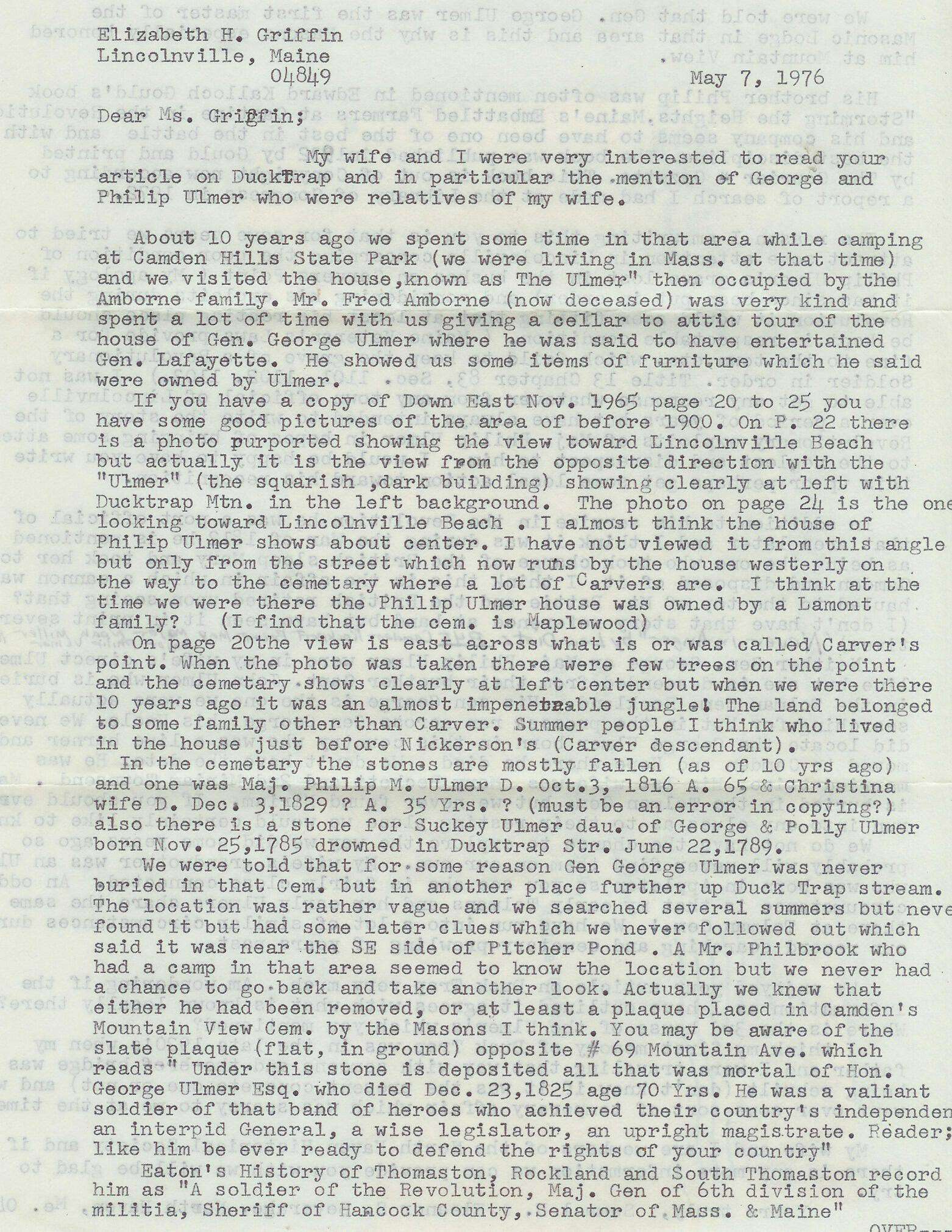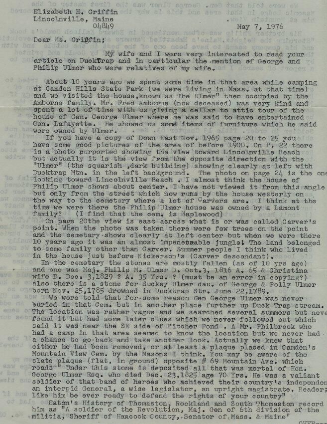 Personal correspondence from Samuel and Eleanor Beverage of North Haven, Maine to Elizabeth Griffin.