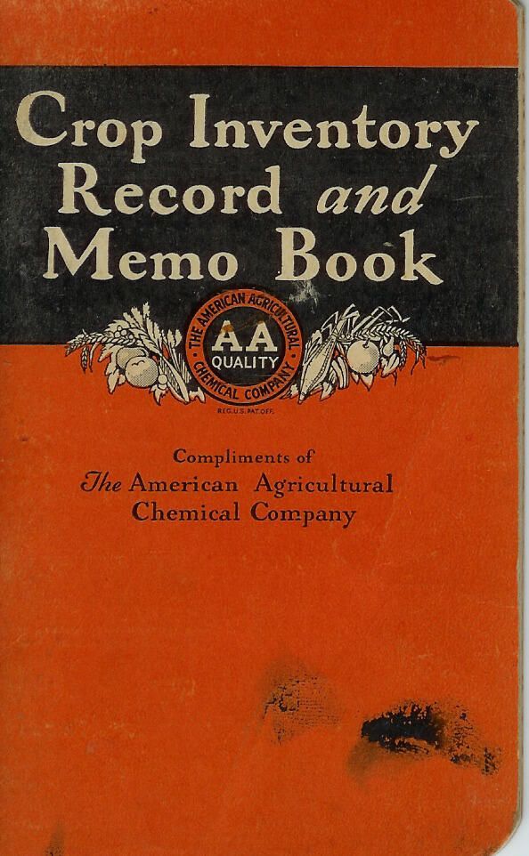 Crop Inventory Record and Memo Book owned by Winfield A. Young. Only blank pages remain.