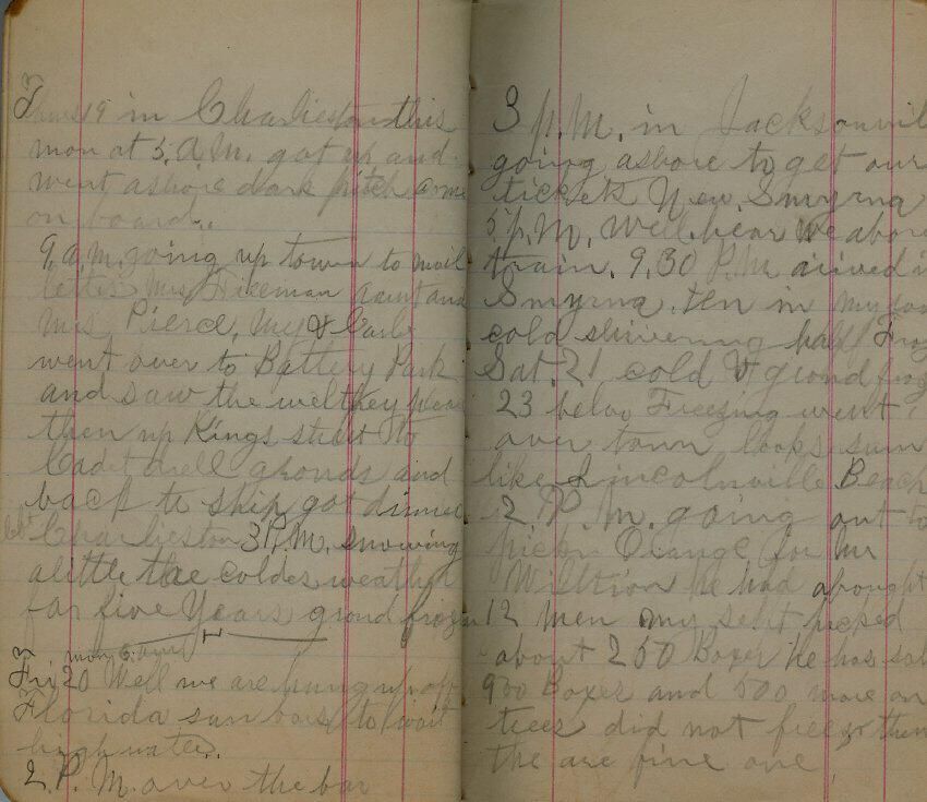 Blank address book but contains a brief journal on blank pages in the back of the booklet. It appears that Winfield sailed from Boston to Florida on Steamer Algonquin.Update Date