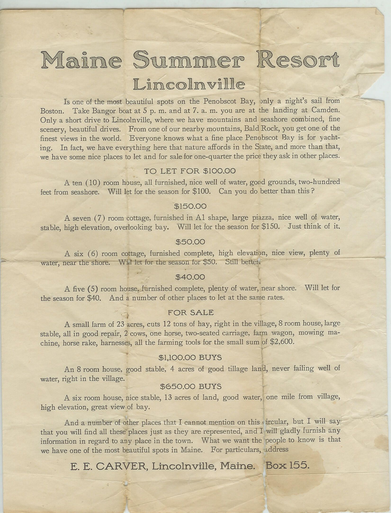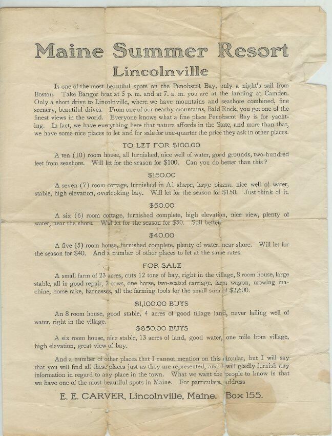 listed by E.E. Carver, Lincolnville, Maine Box 155