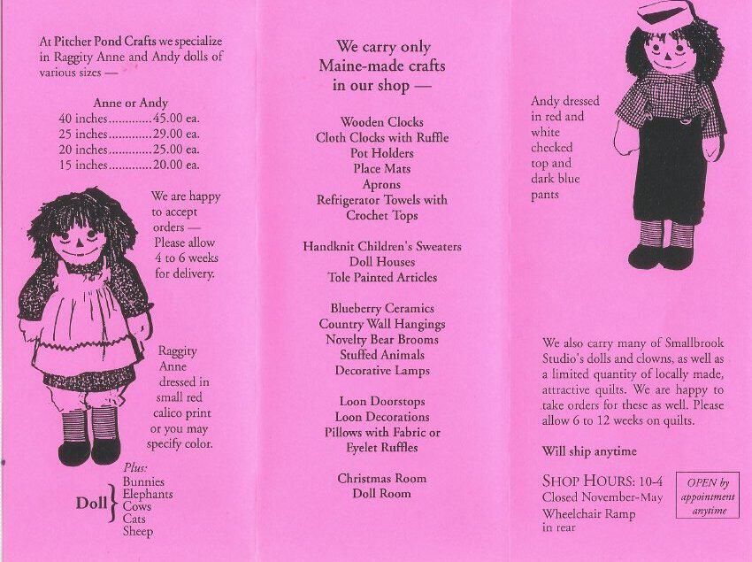 Pitcher Pond Crafts, includes price list for Raggedy Ann/Andy dolls