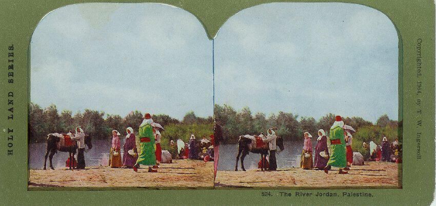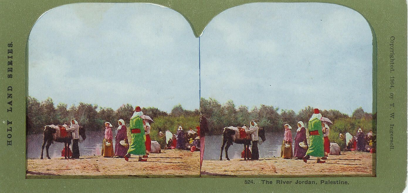 Collection of stereographs stored in two black cardboard boxes. Entitled "Holy Land Series".