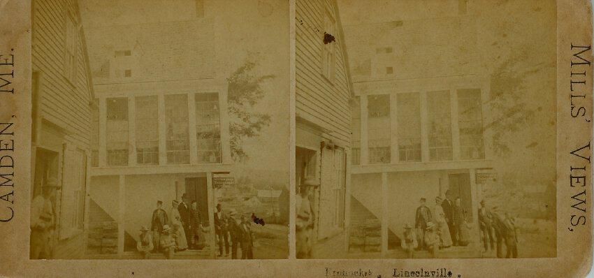 Stereograph showing a side view of the former Dearborn's Store at Lincolnville Beach, Maine. Building now gone.