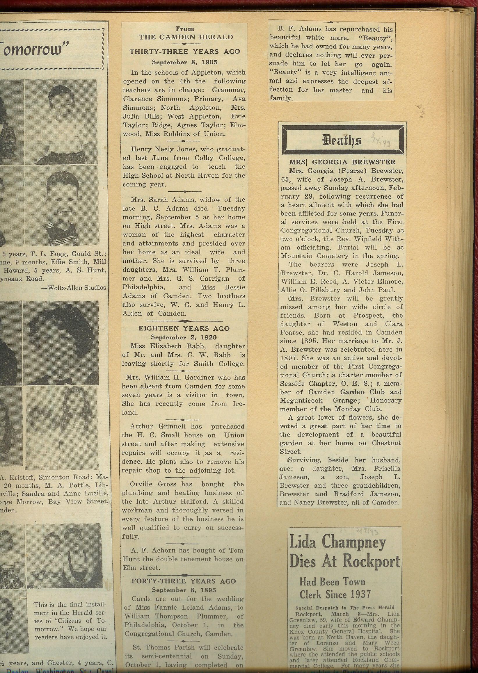 Scrapbook kept by Wentworth - Horton family member contains World War II newsclippings, obituaries, engagements, Weddings, births, local events.