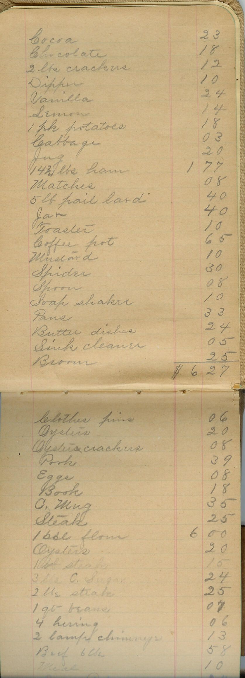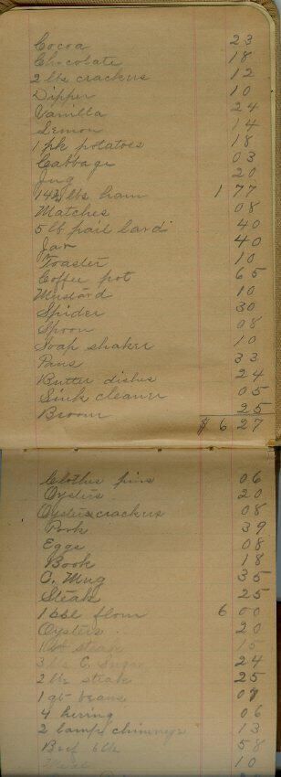 Account book owned by Blanche Hosmer of Camden, Maine in which she kept an accounting of money spent for groceries and household supplies.