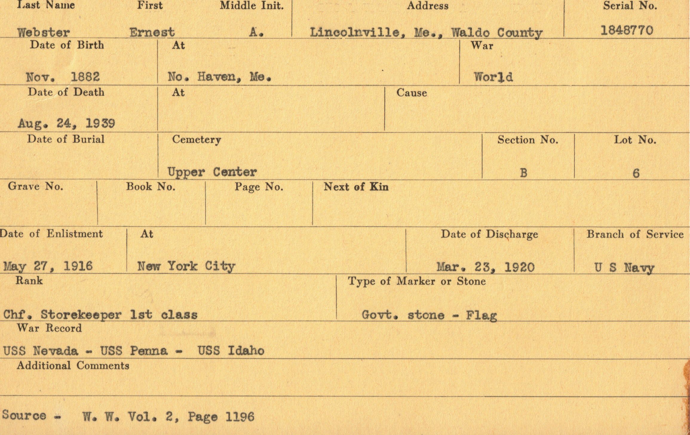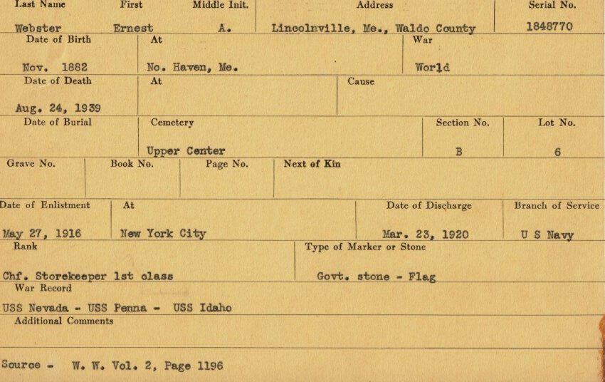 Ernest A. Webster Military RecordEntry/Object ID