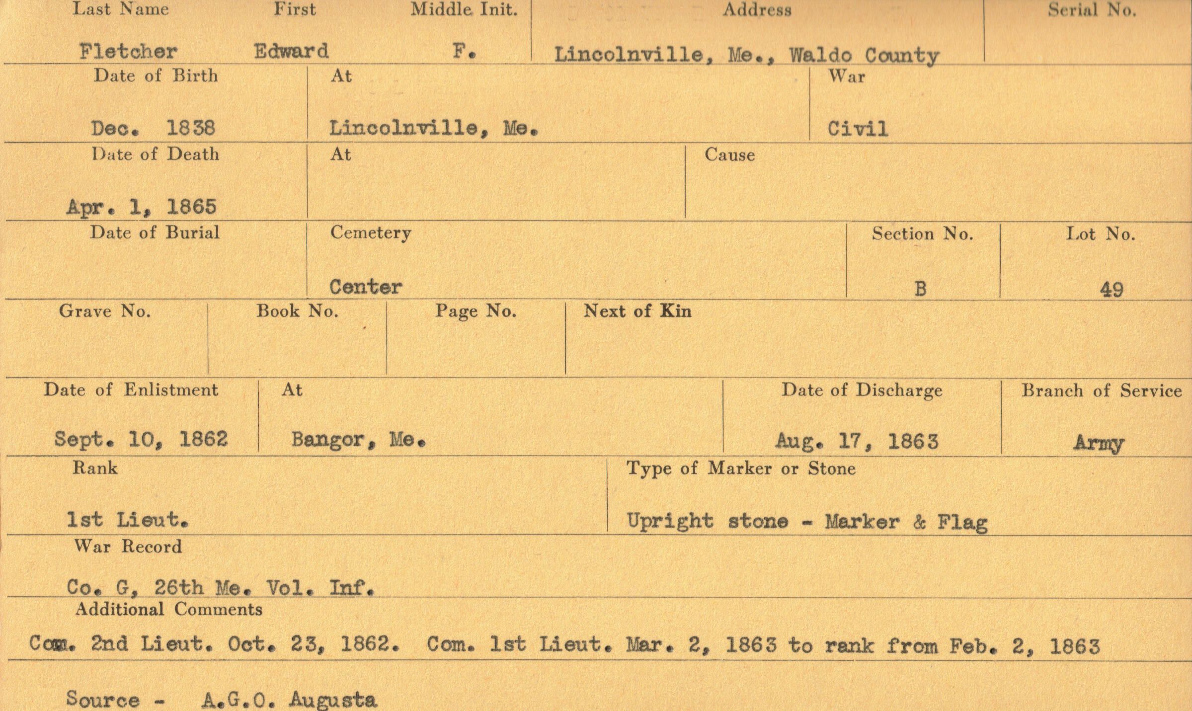 Military records of Edward F. Fletcher who served in the Civil War.Relationships