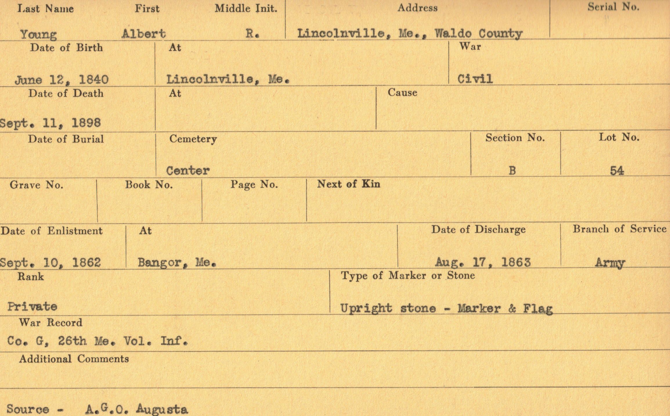 Military records of Albert R. Young who served in the Civil War.Relationships