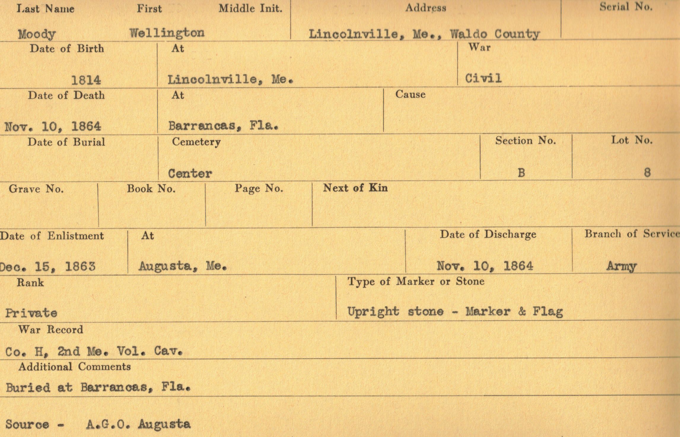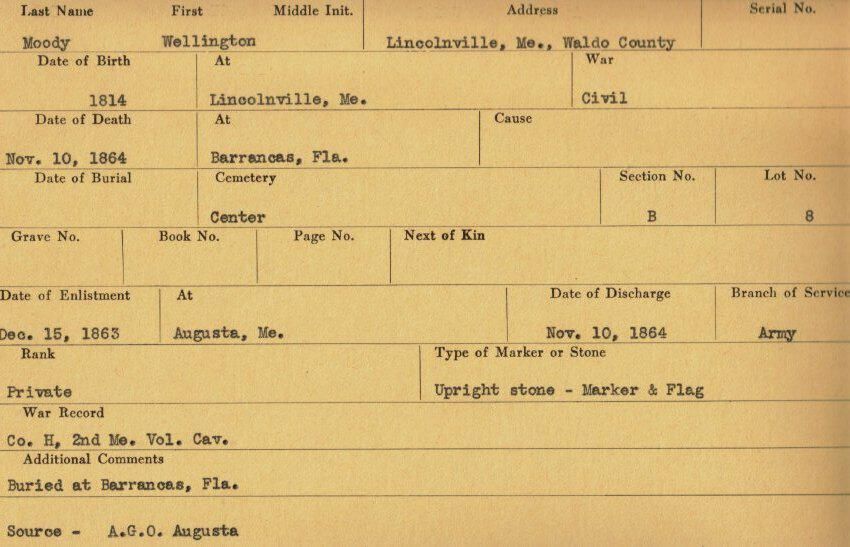 Military records of Wellington Moody who served in the Civil War.Relationships