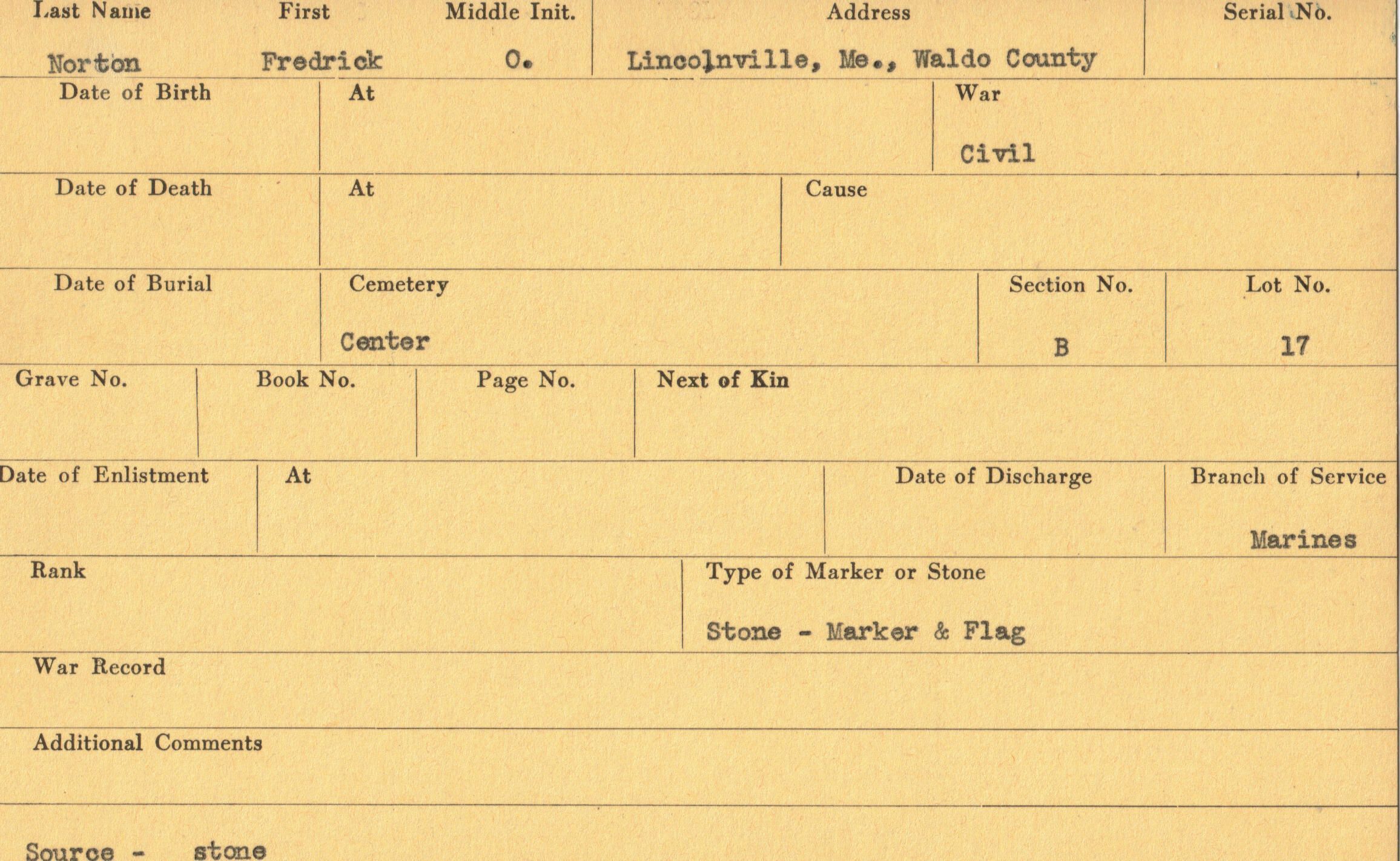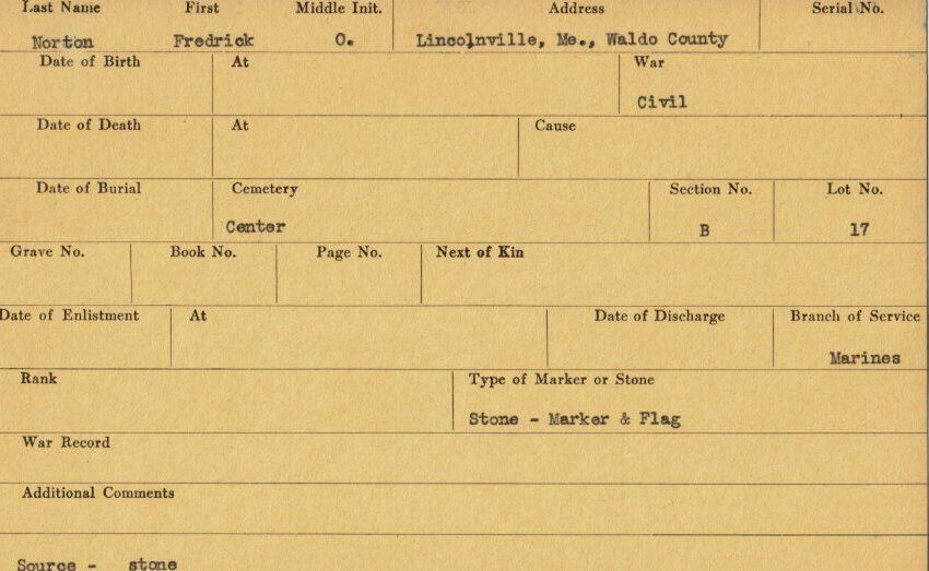 Military records of Frederick O. Norton who served in the Civil War.Relationships