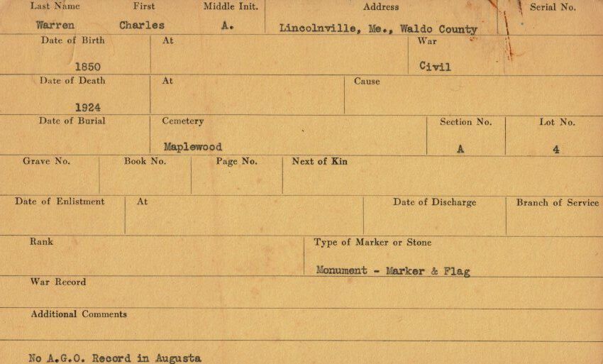 Military records of Charles W. Warren who served in the Civil War.Relationships