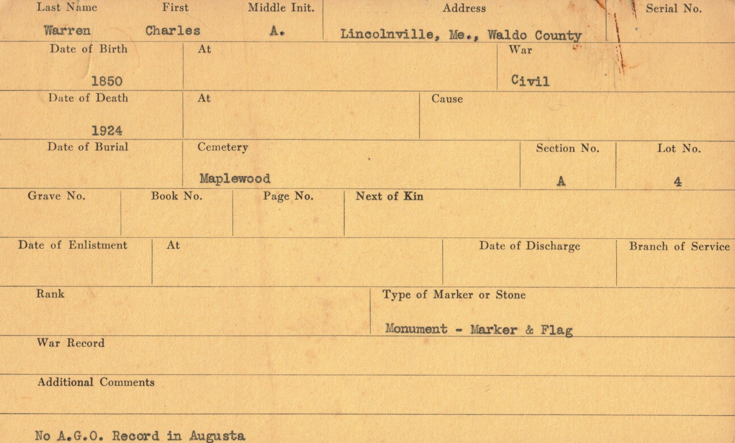 Charles A. Warren Military RecordsEntry/Object ID