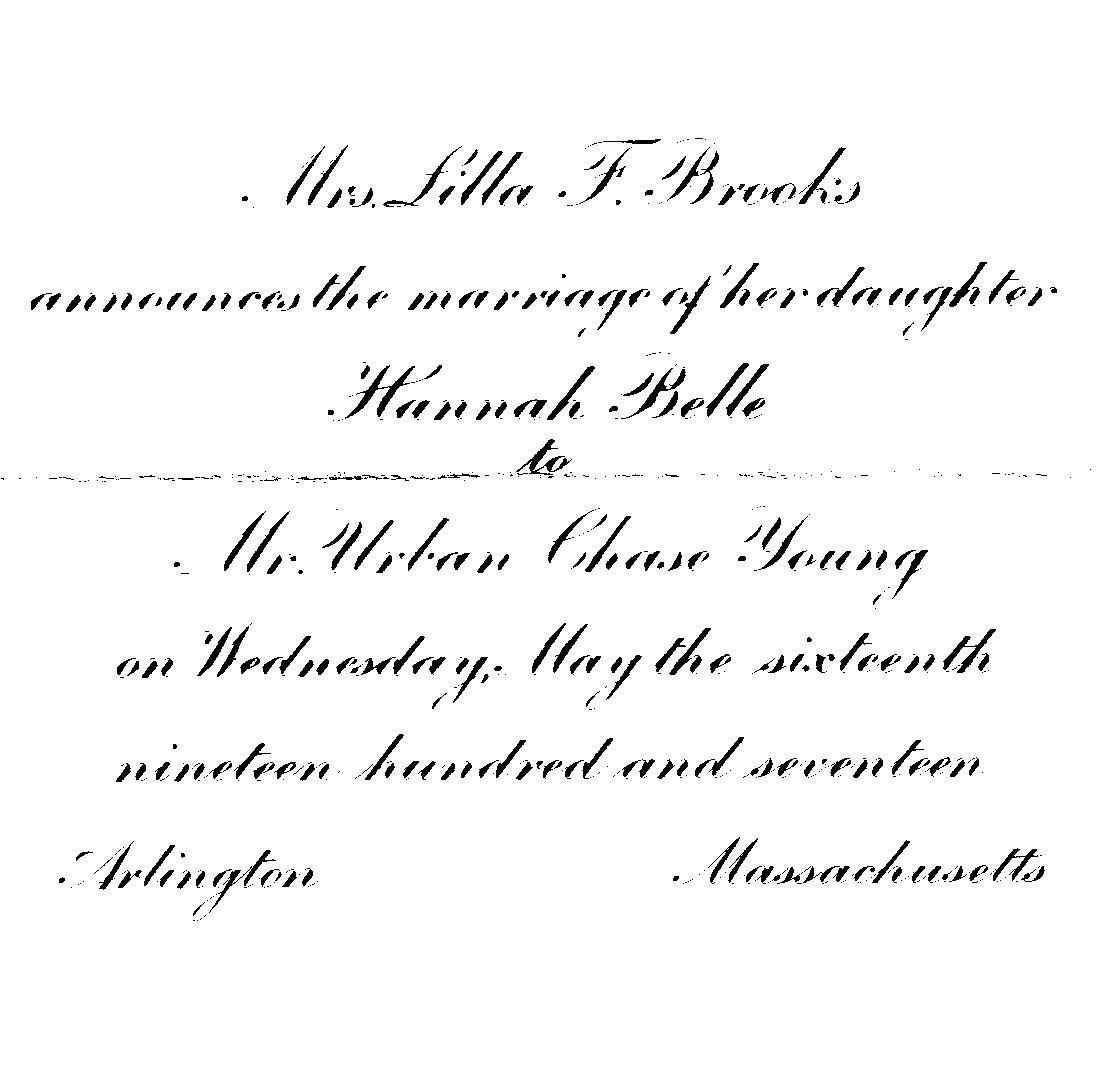 Wedding announcement for Hannah Belle Brooks and Urban Chase Young.Relationships