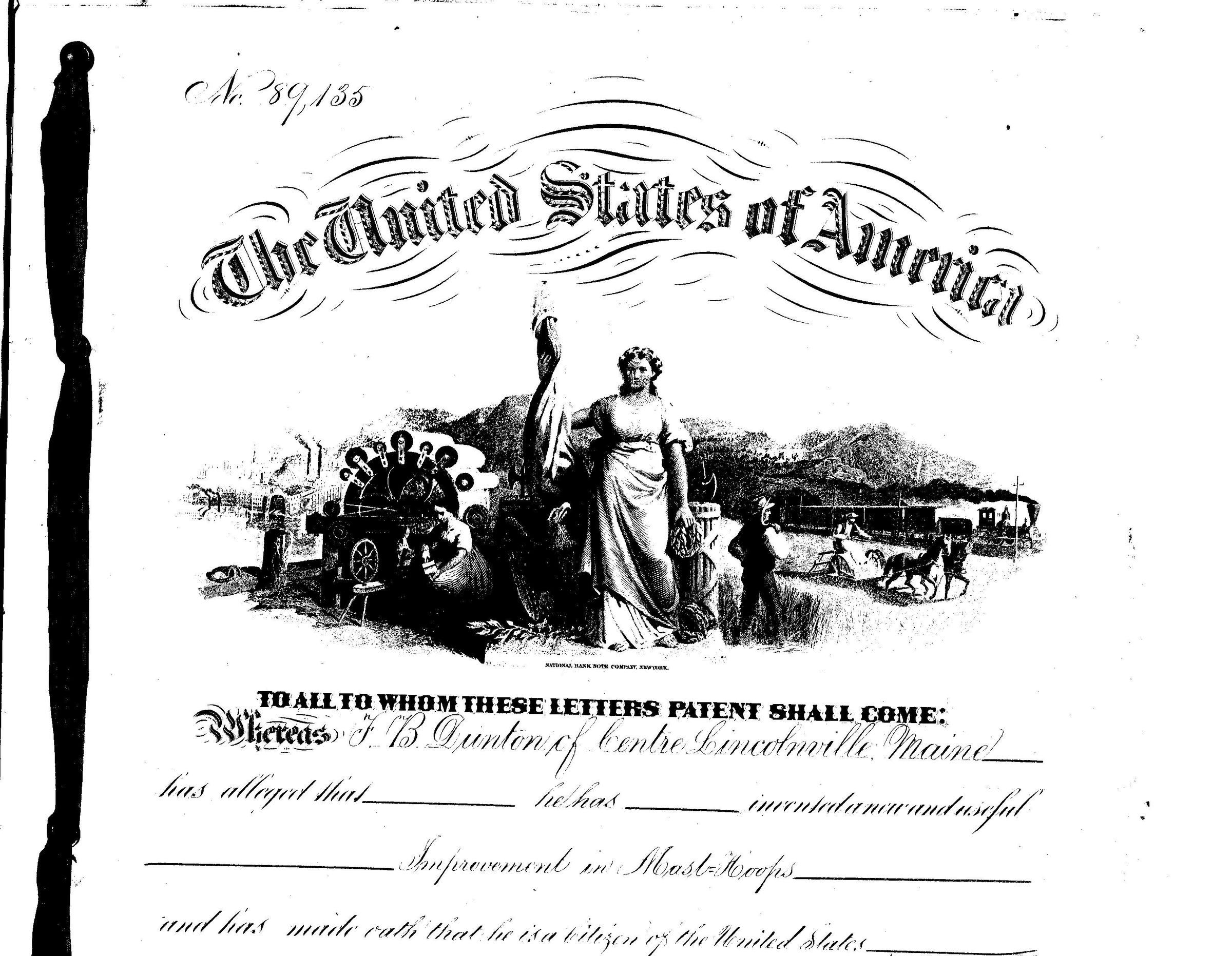 Patent awarded to F. B. Dunton for sail attachment (improvement in mast hoops).Relationships