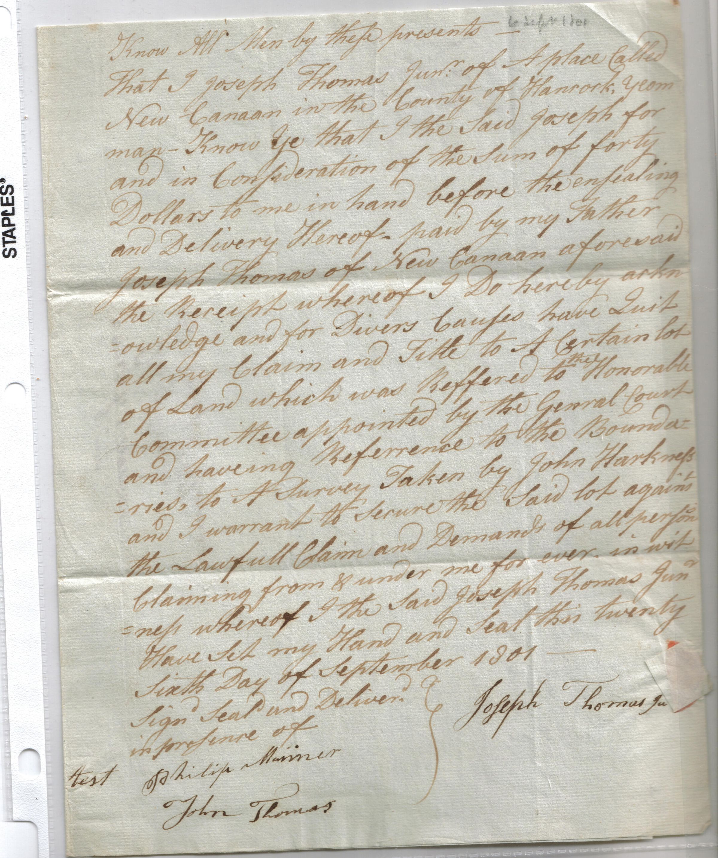 Quit Claim Deed issued to Joseph Thomas from Joseph Thomas Jr.