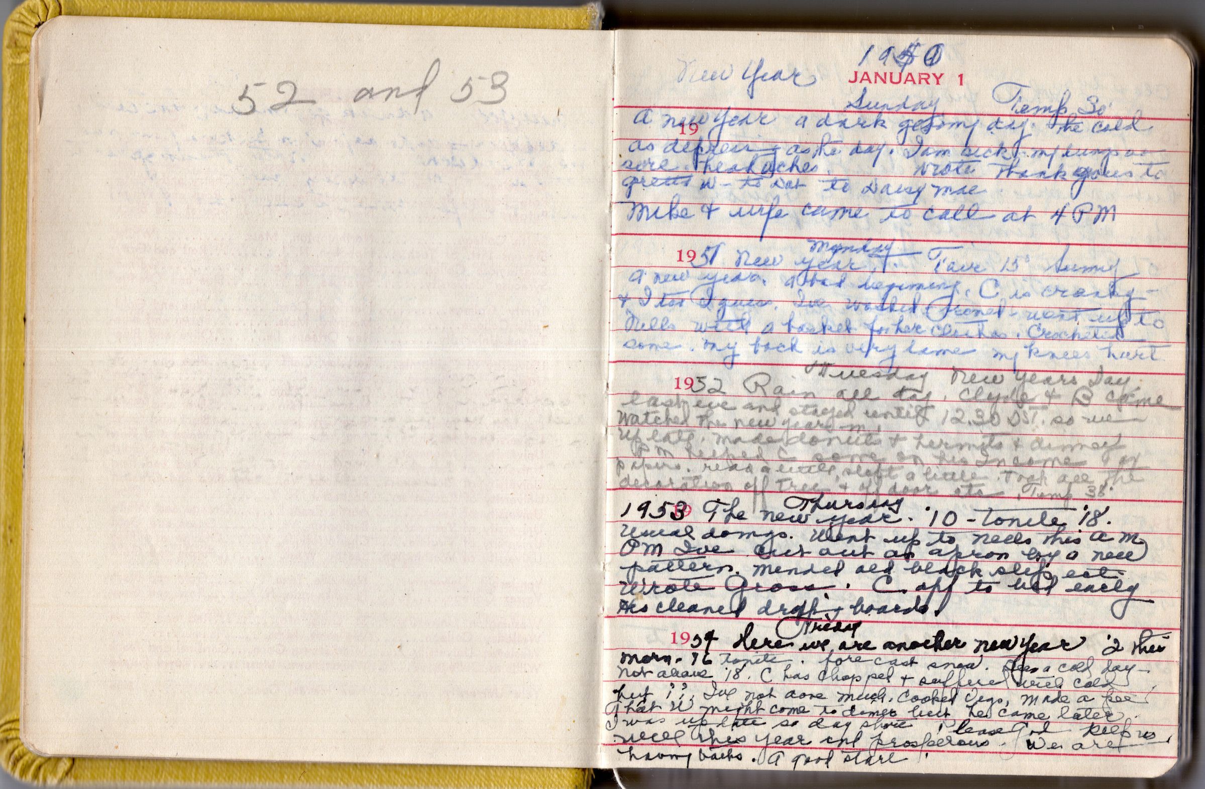 Diary kept by Ethel Heald for the years 1950 through 1954.Relationships