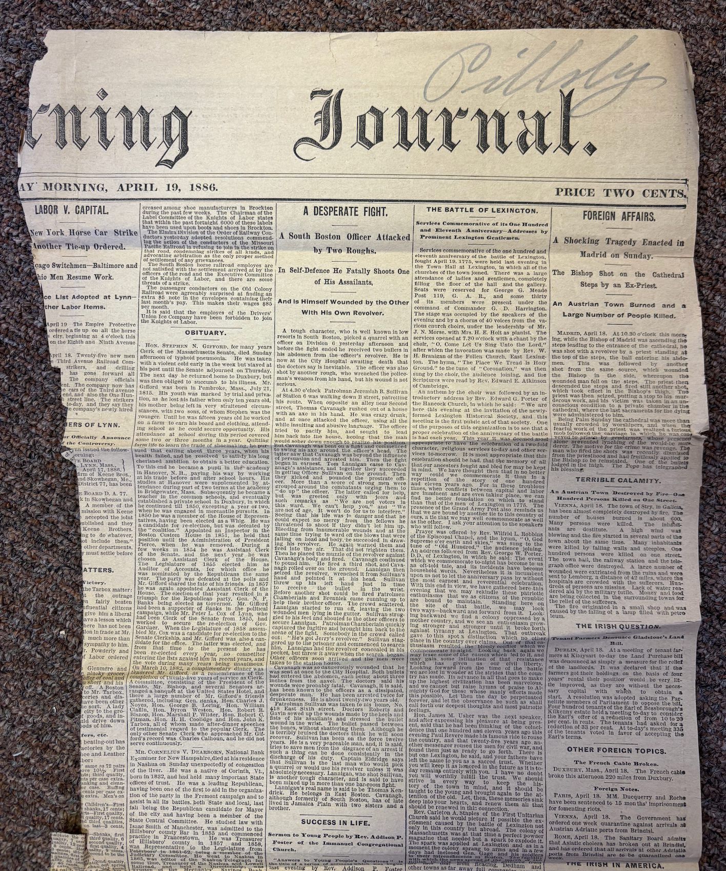 Single page of Boston Journal -- April 19, 1886