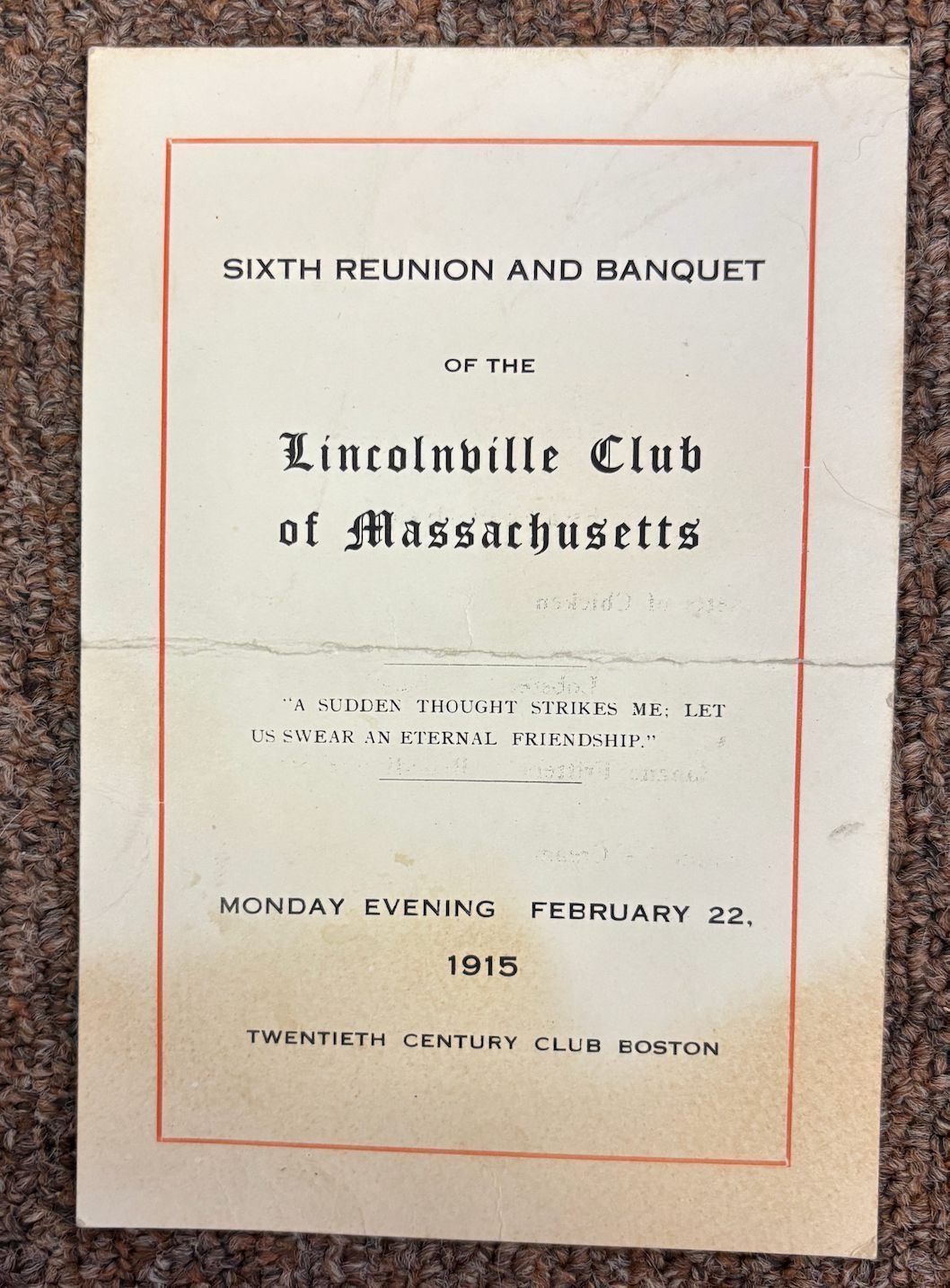 1915 event held at Twentieth Century Club, BostonUpdate Date