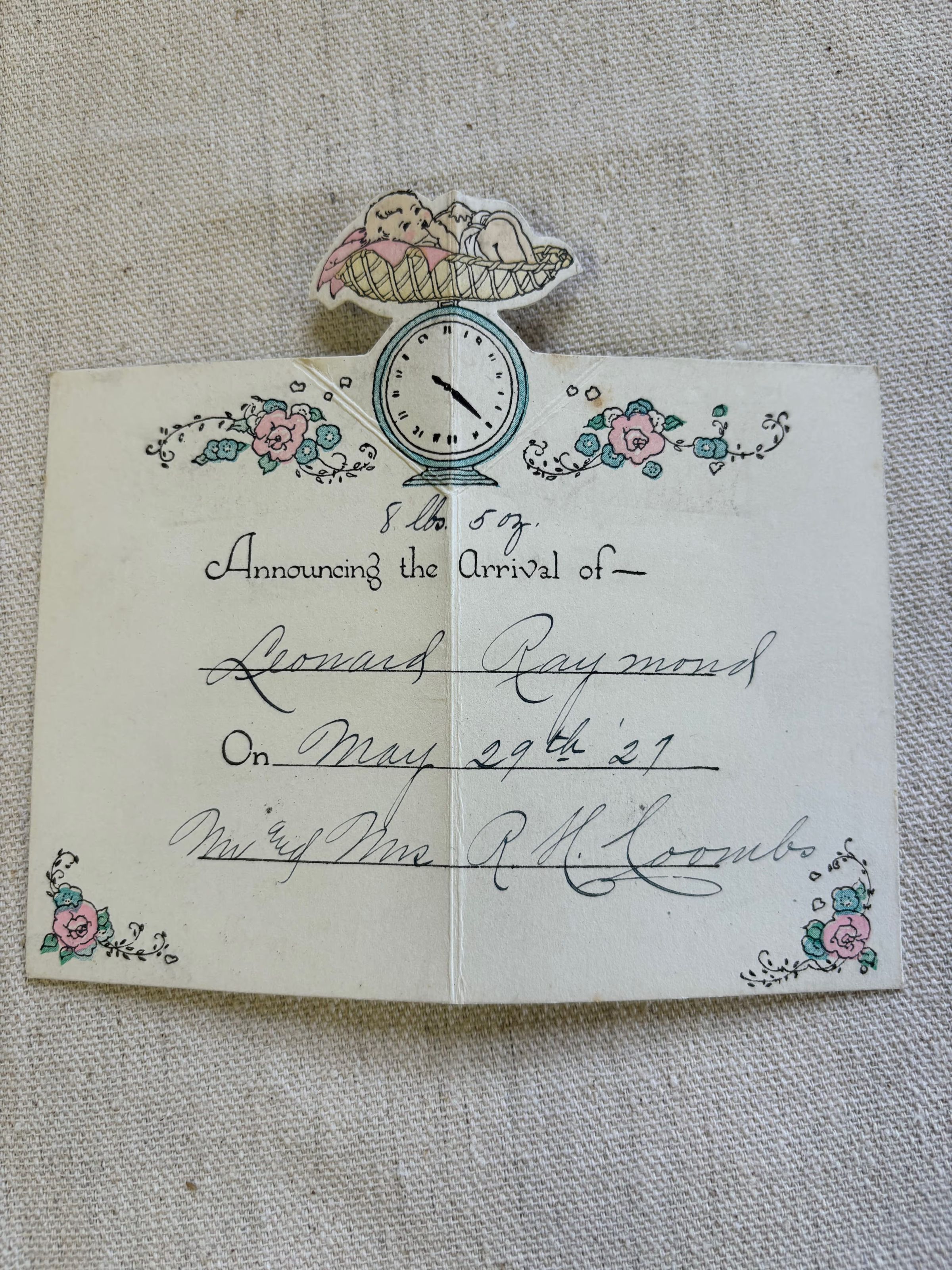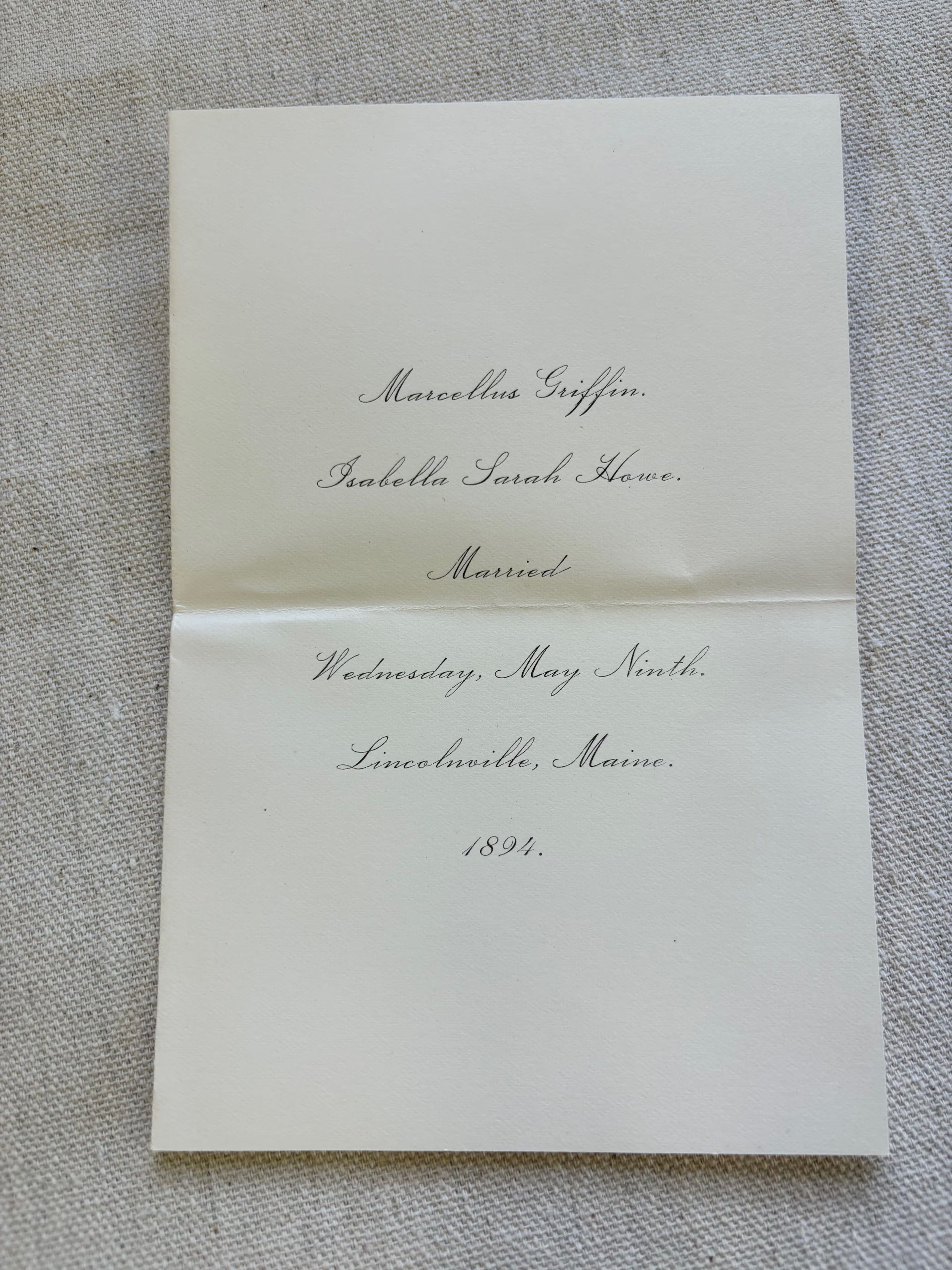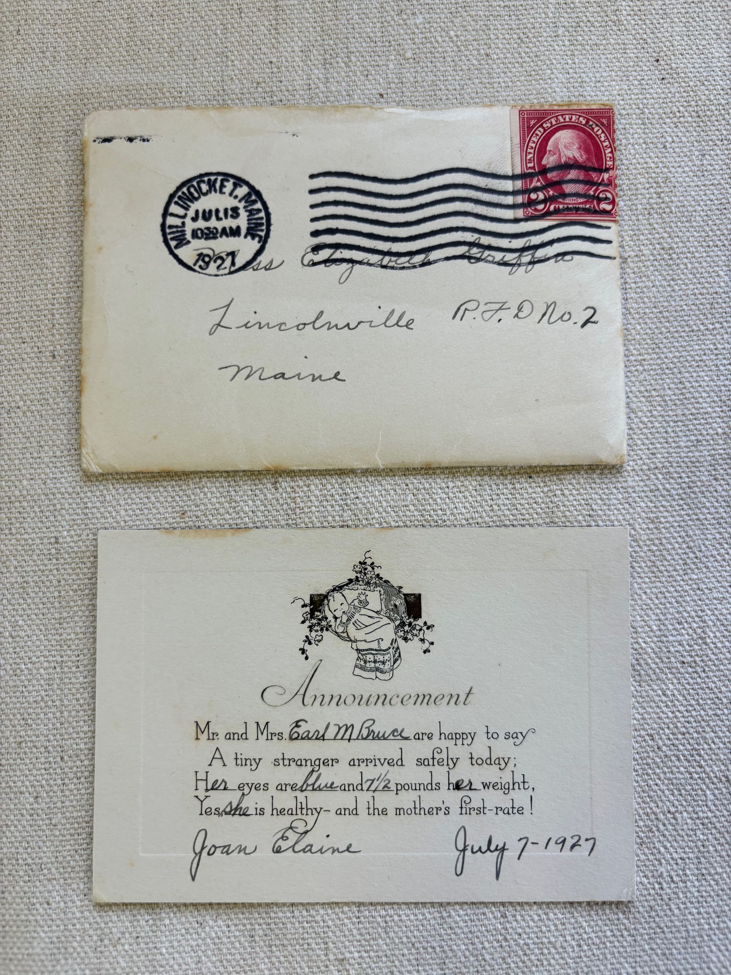 Correspondence, wedding announcement, birth announcement, deaths, etc..Relationships