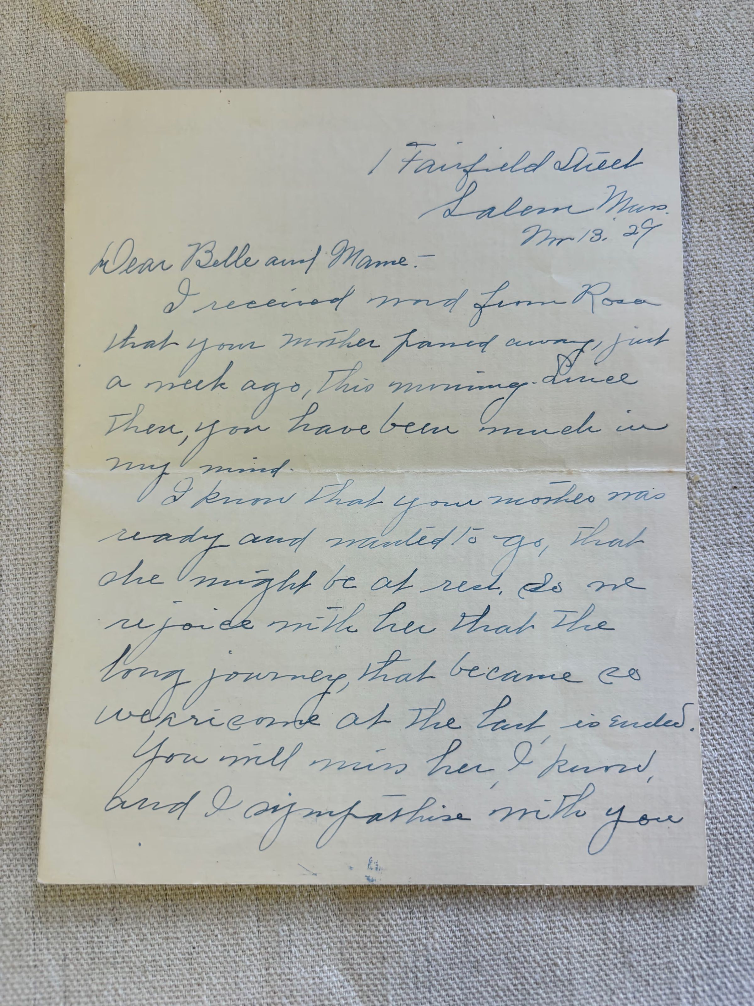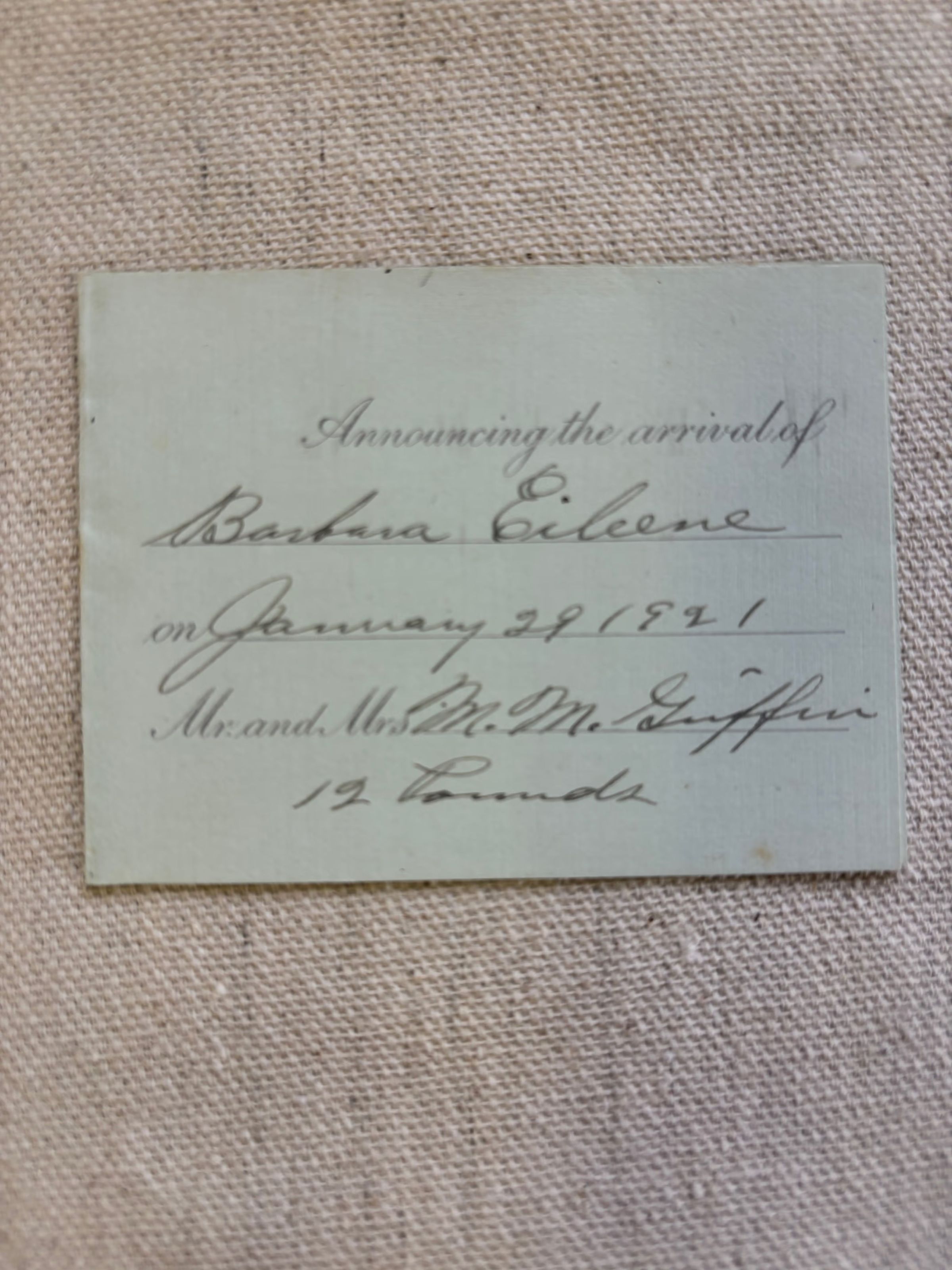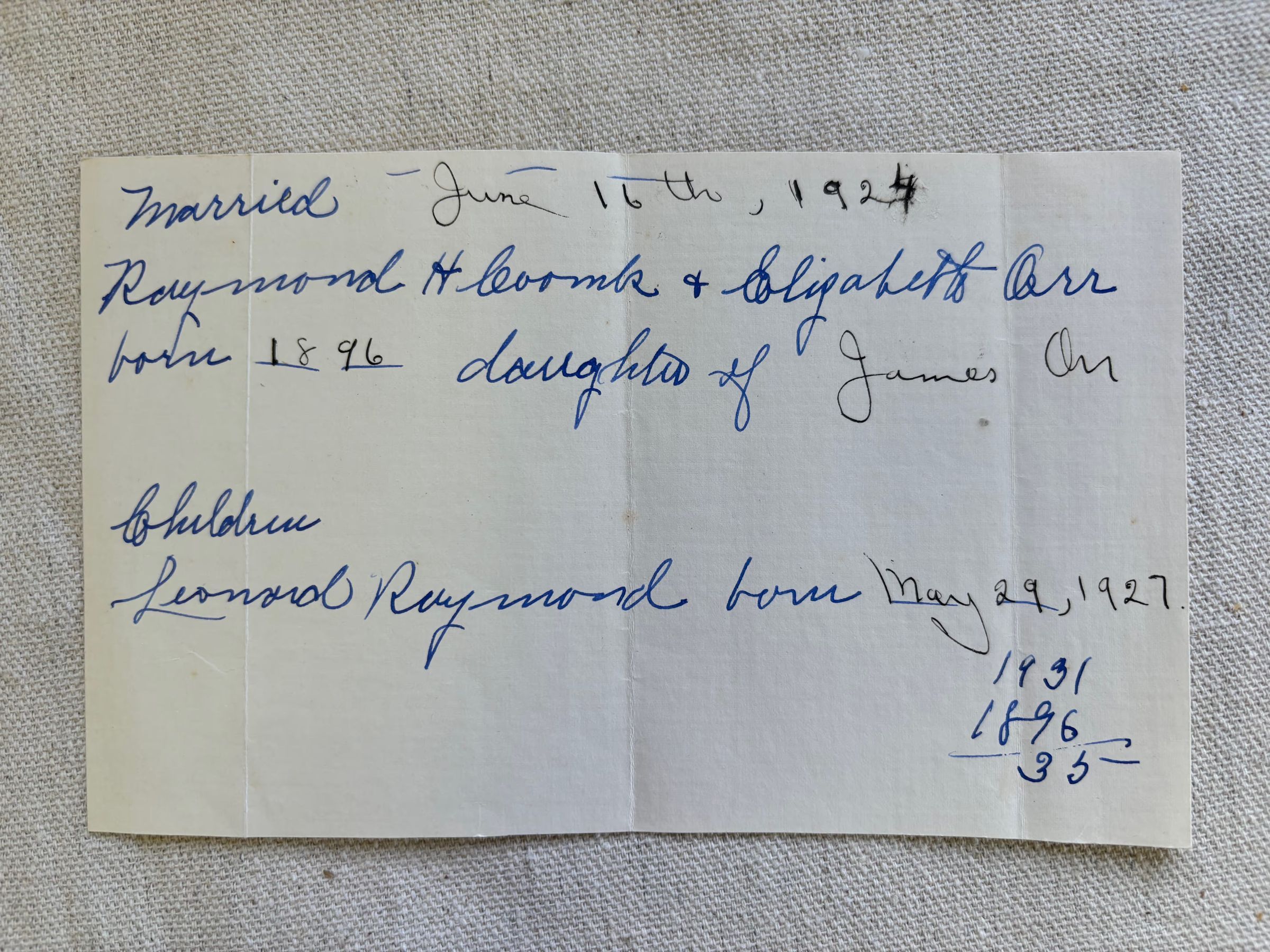 Correspondence, wedding announcement, birth announcement, deaths, etc..Relationships