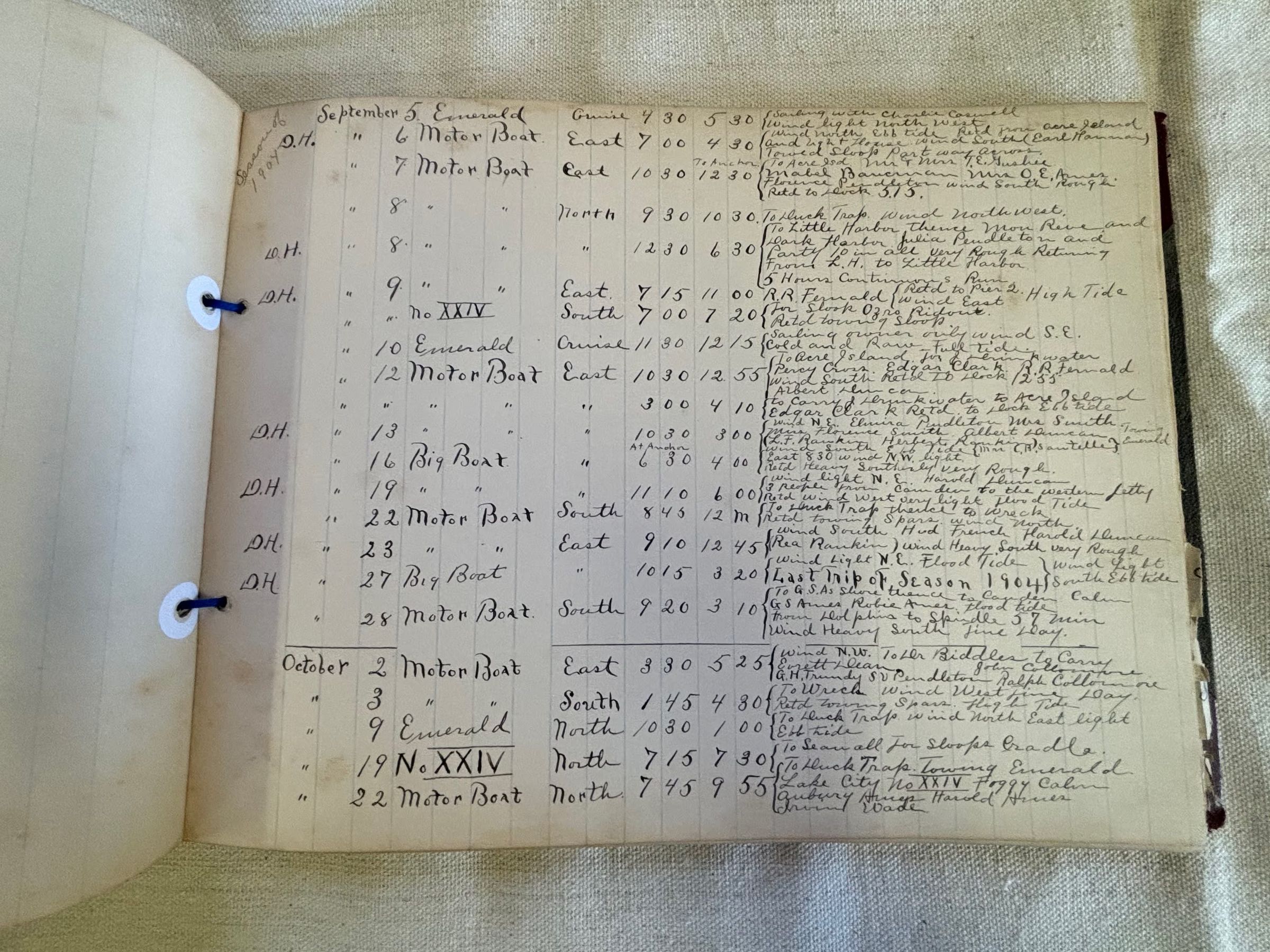 Boat log kept by boatbuilder Mr. Ames