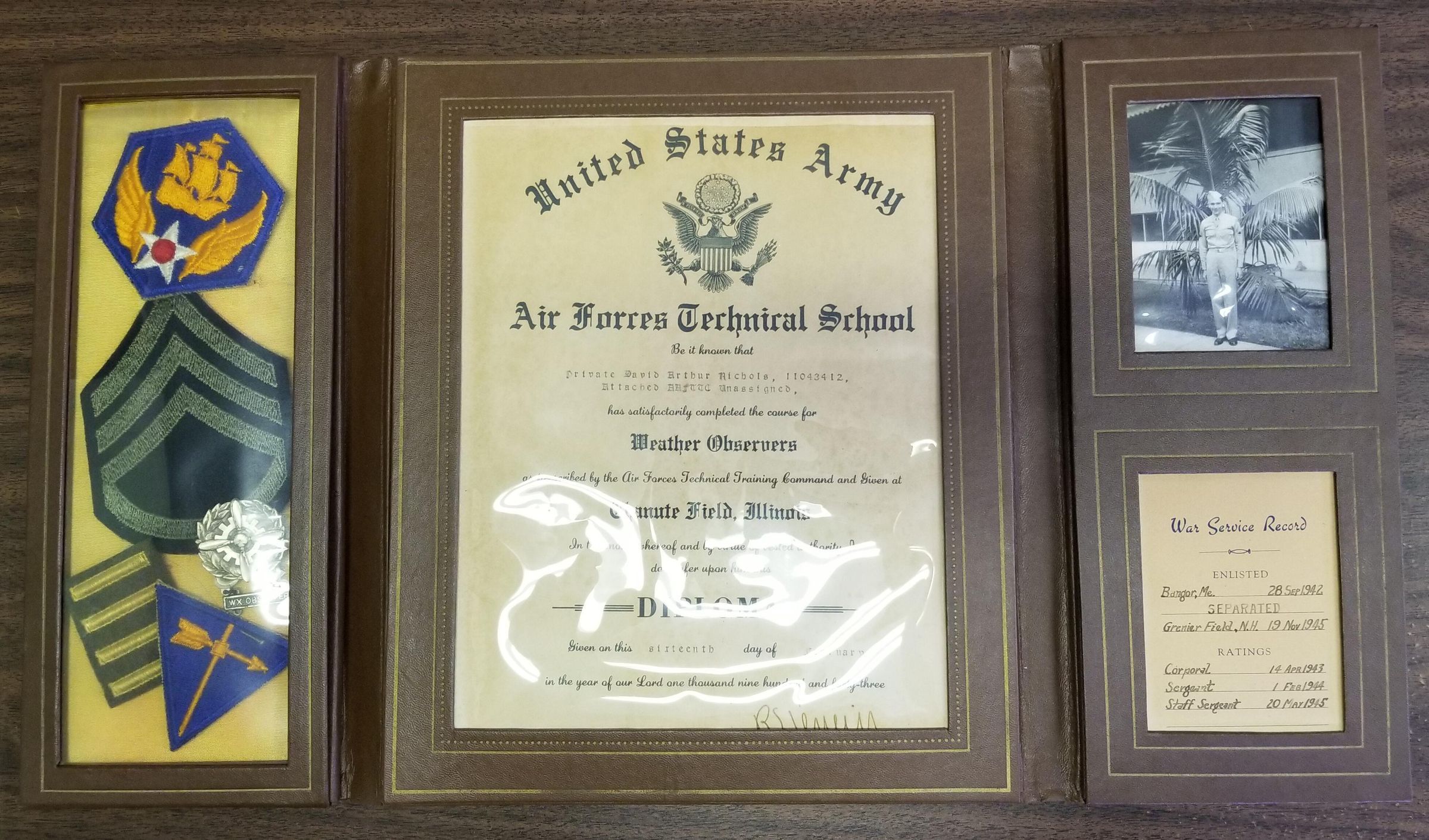 Diploma granted to David Nichols from US Army Air Forces Technical School