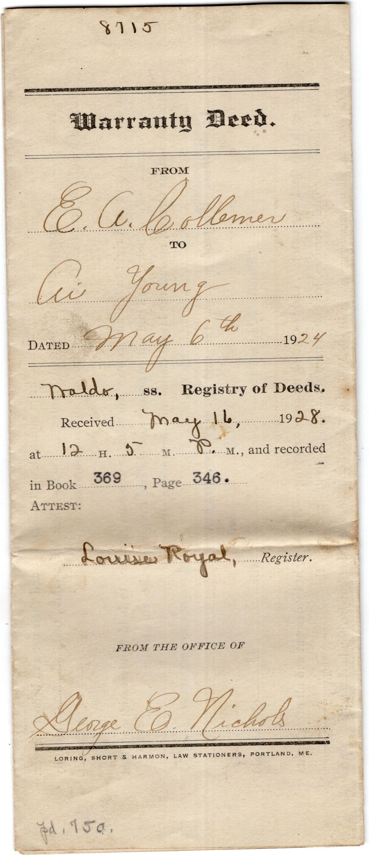 Deed - Collemer to A.I. YoungEntry/Object ID