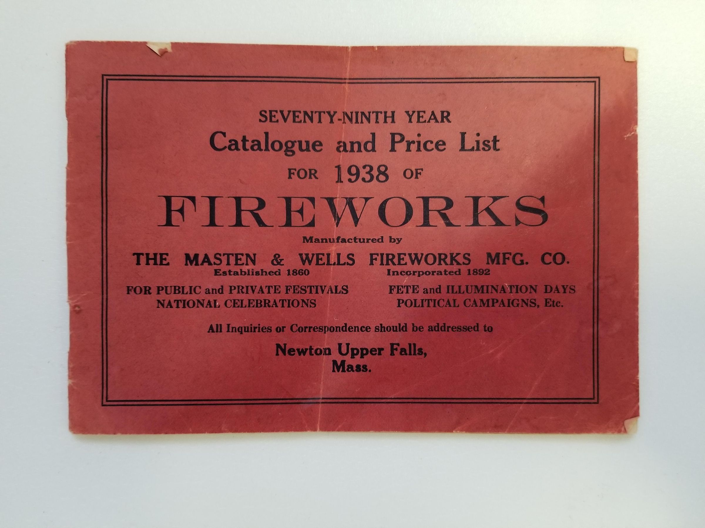 1938 catalogue of fireworks from Masten & Wells Fireworks Mfg. Co., Newton Upper Falls, Mass.