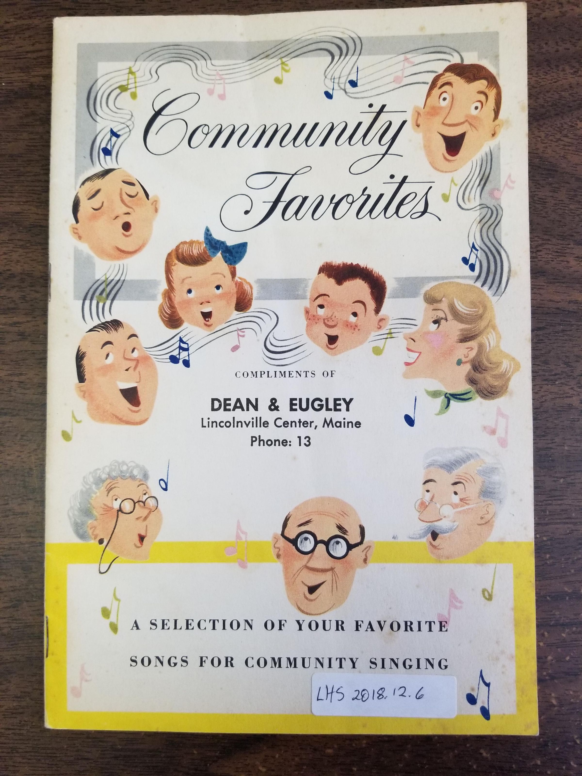 23 page song book compliments of Dean & Eugley, Lincolnville Center, Maine Phone: 13Update Date