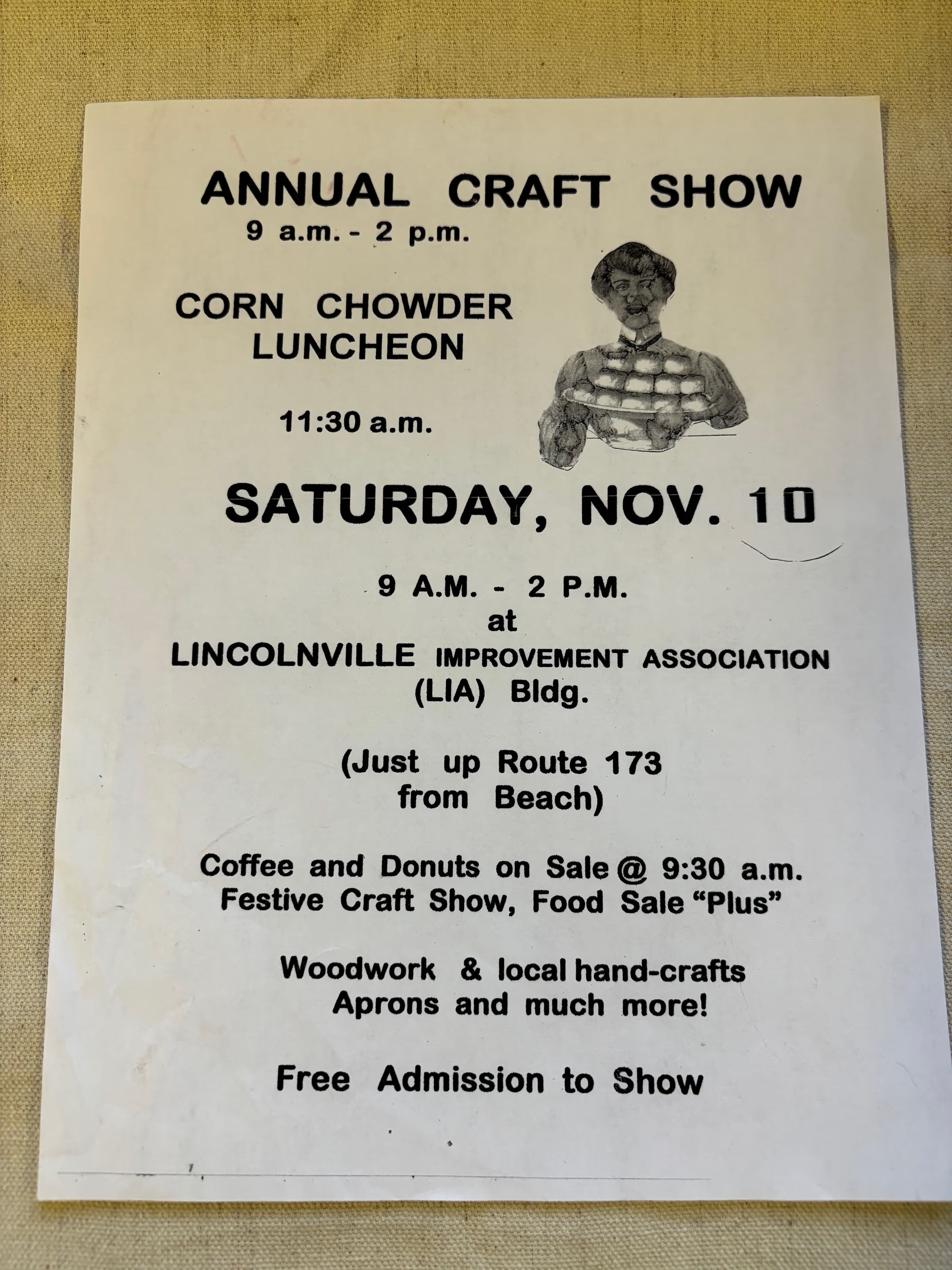 A folder containing town events -- public suppers, craft shows, Founders Week-end -- posters announcing the events