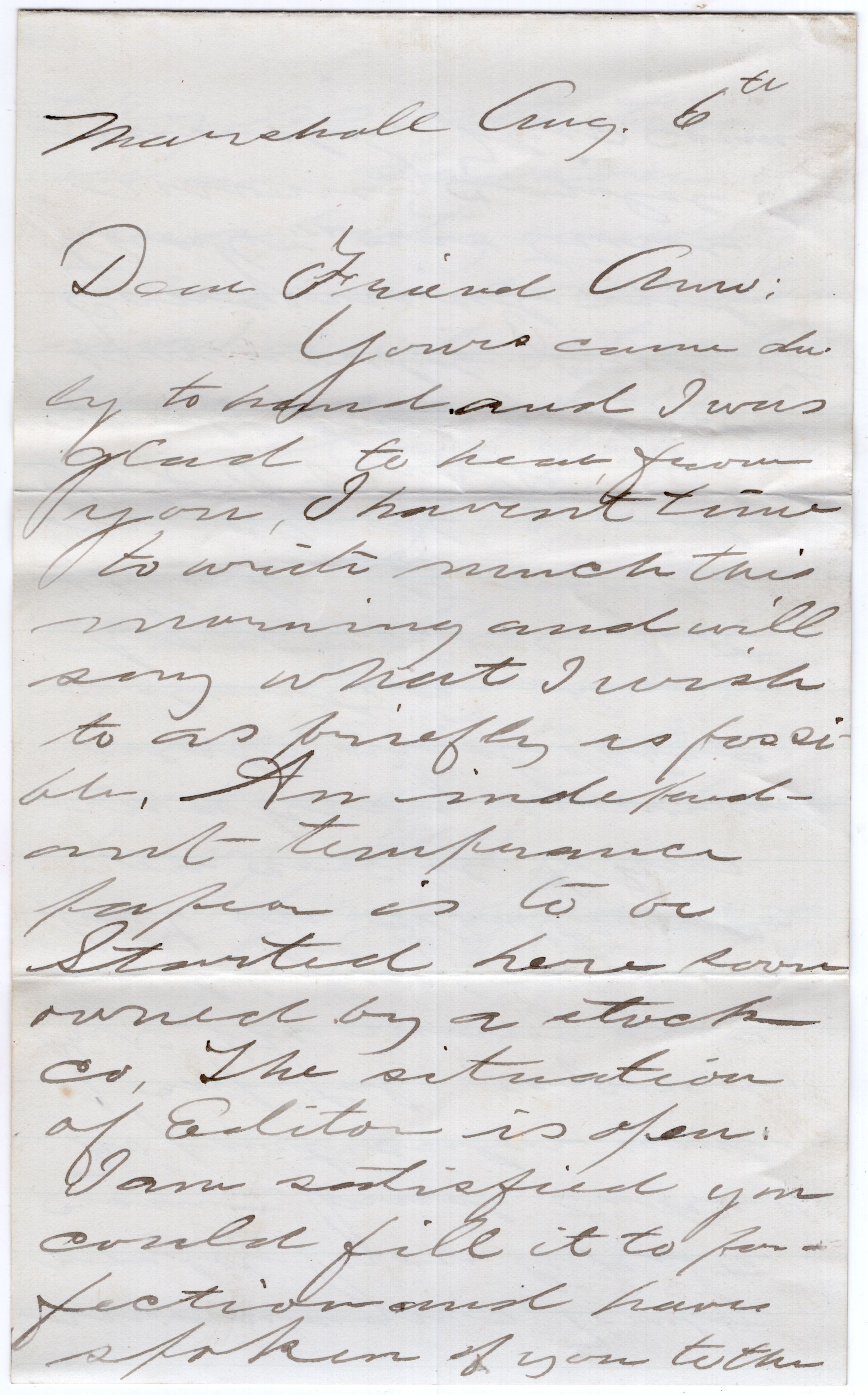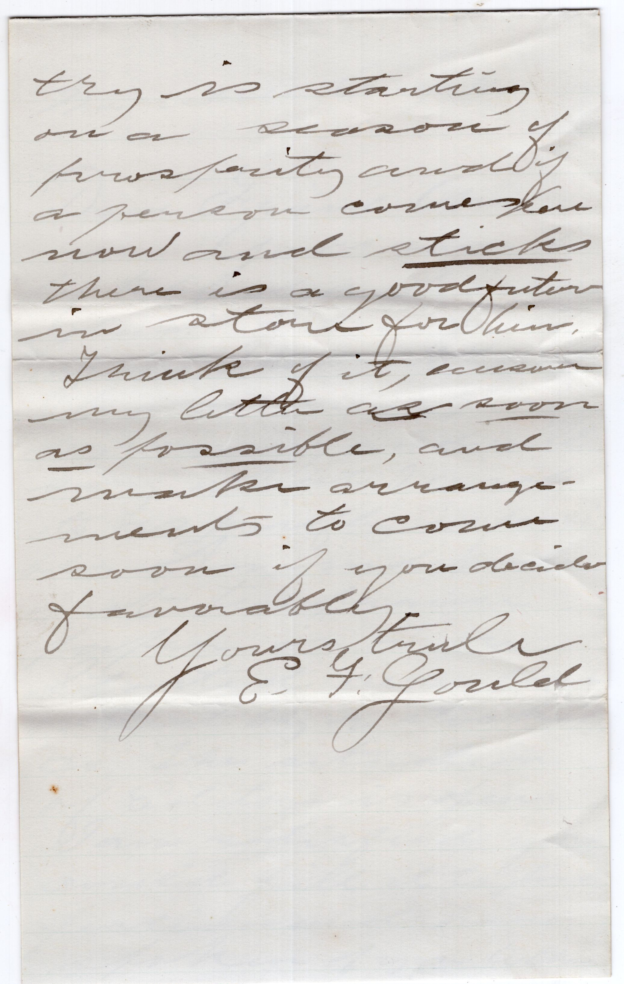 Knight Collection 1879 Letter; Dated August 6th; Written by Elmer Gould to Arno Knight; Arno is working out in ColoradoRelationships