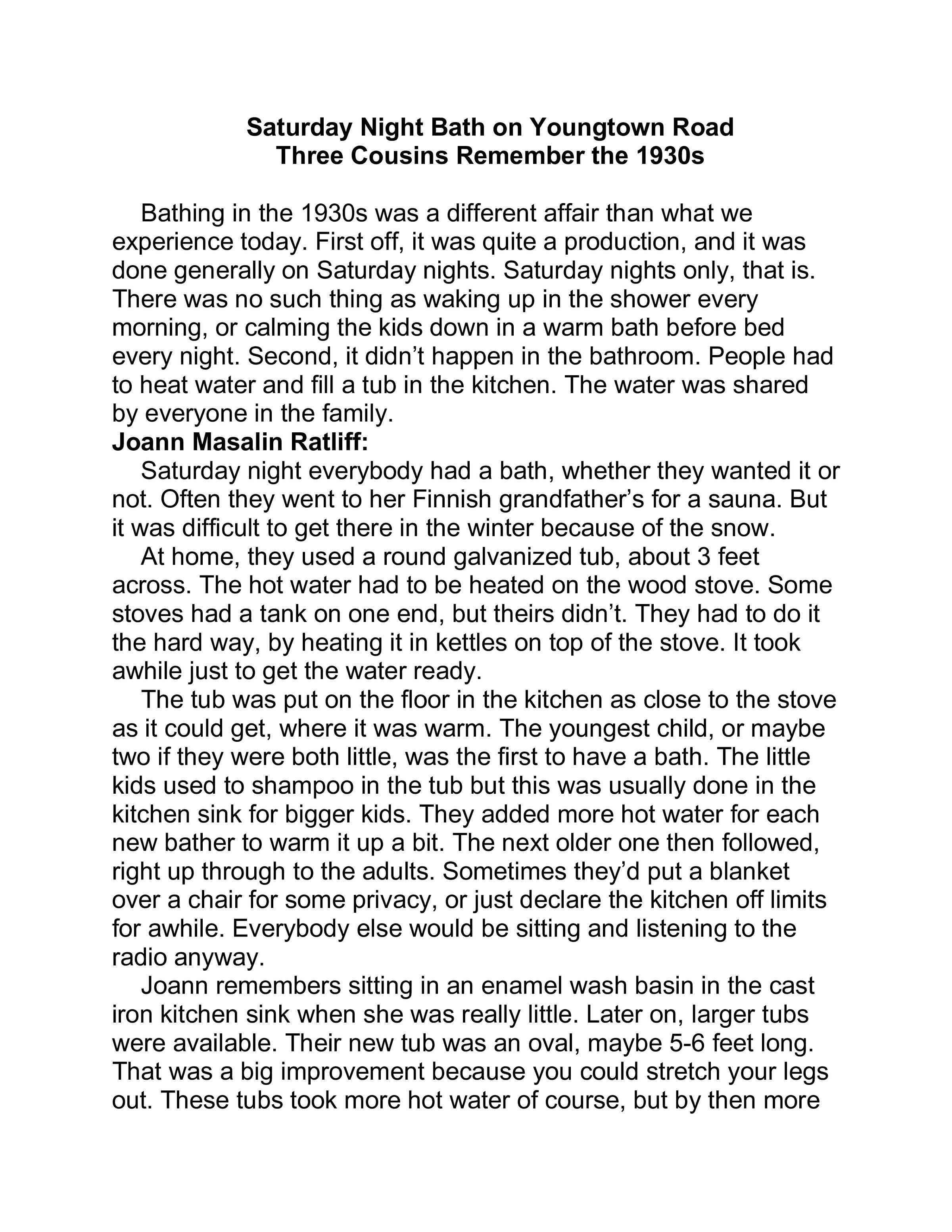 Saturday Night Bath on Youngtown Road
