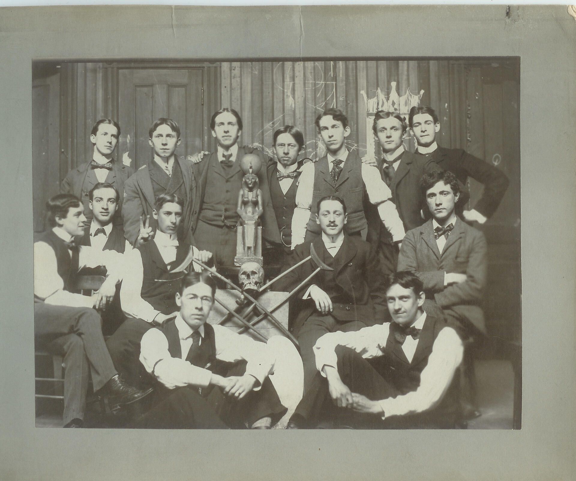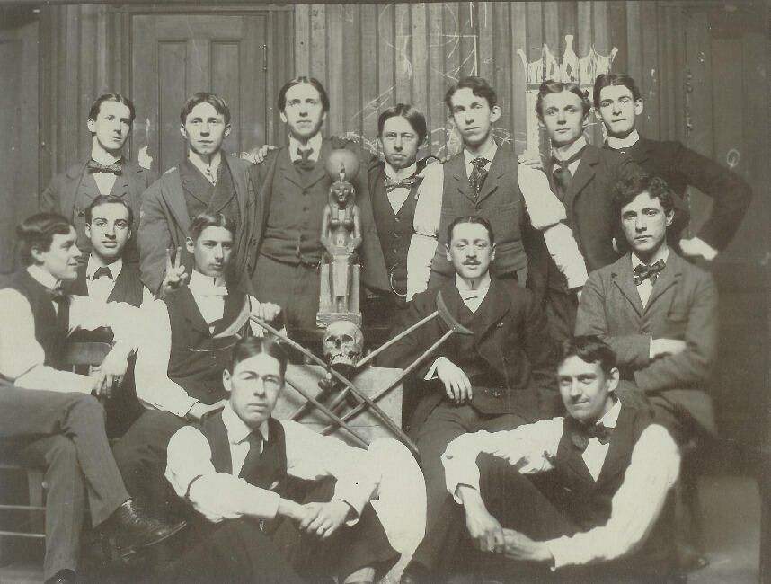 Cowles School Art Academy. Will Davis at front left. Appears to be secret society at Copley Square, Boston.Relationships