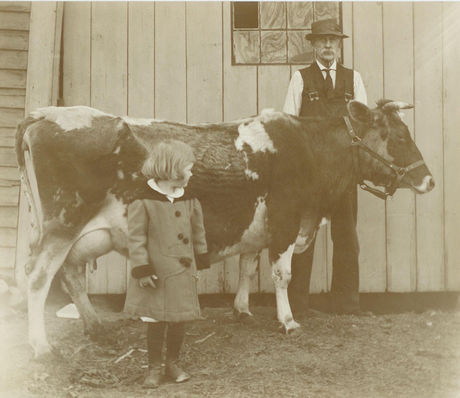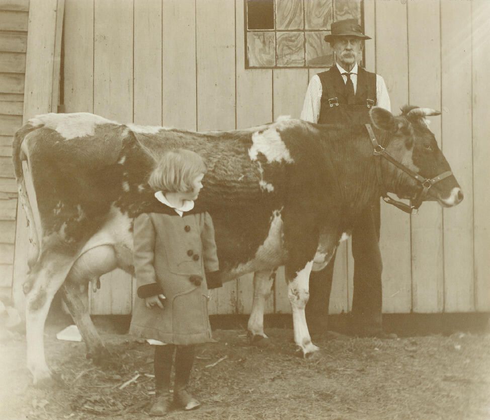 Aline Davis Hulbert with her grandfather and cow.Relationships
