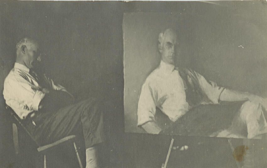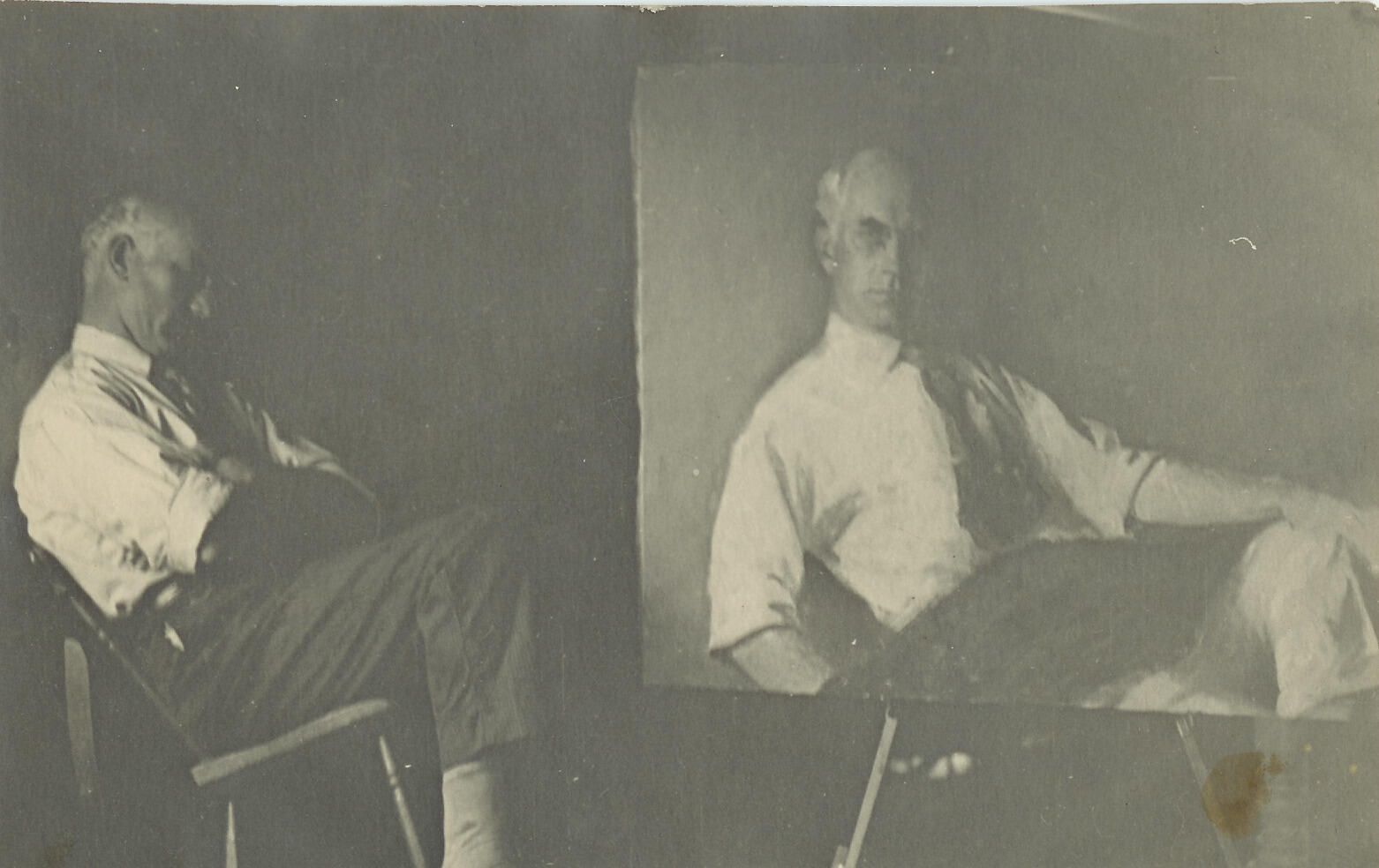 photo of sleeping Bert Davis in front of the oil painting he is sitting forRelationships