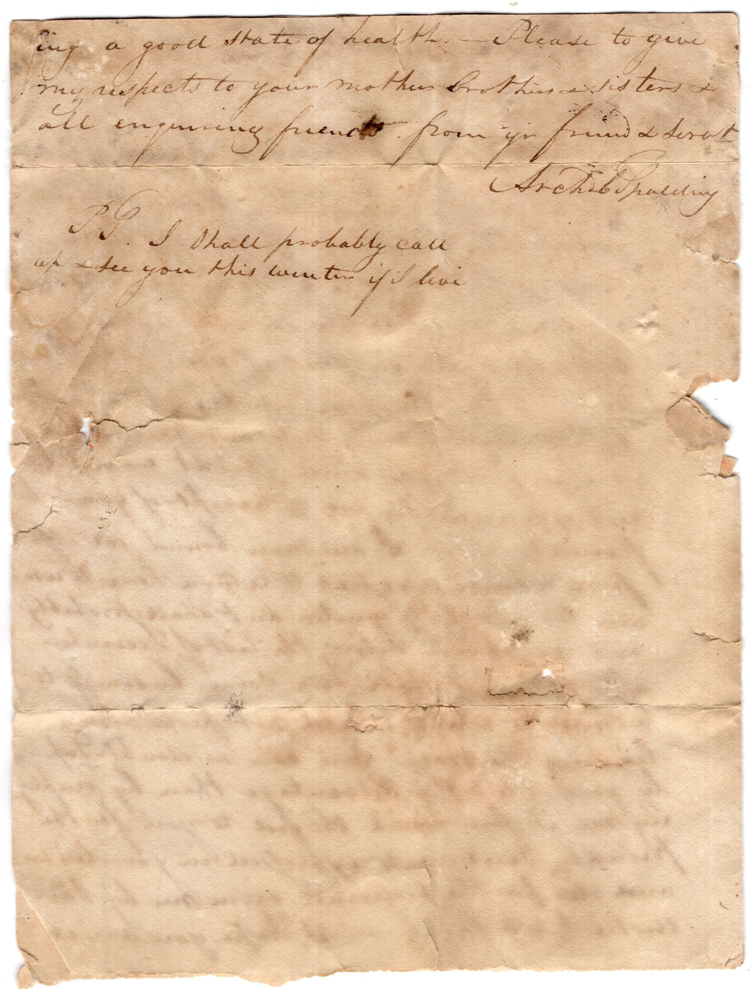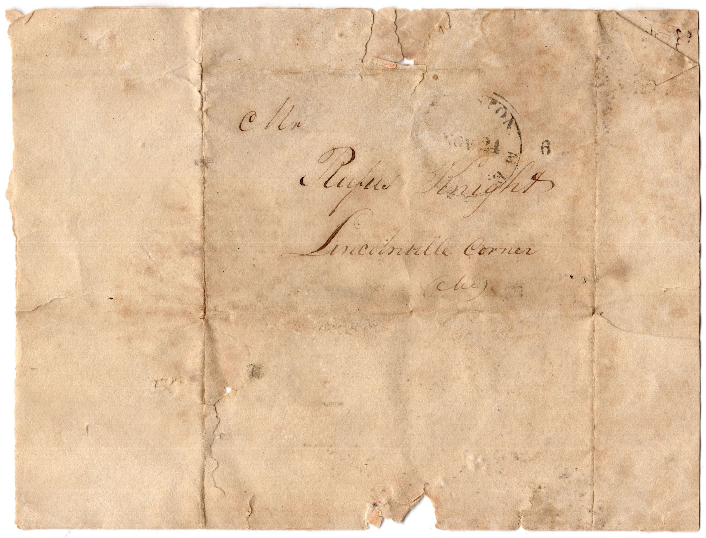 Knight Collection - 1833 Letter; Dated November 23rd; Written by Archie Spaulding to Rufus KnightRelationships