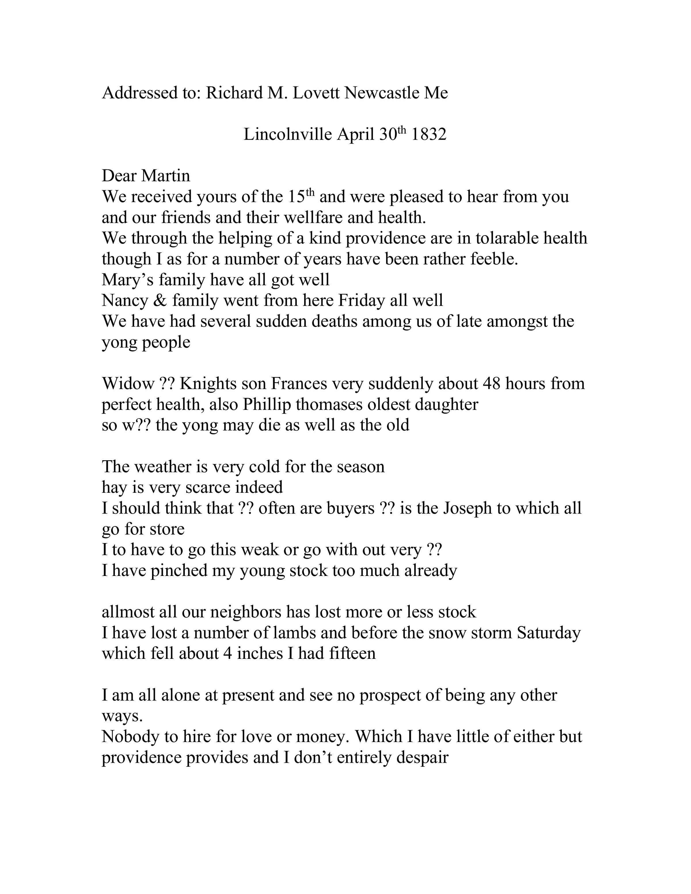 Letter written in 1832