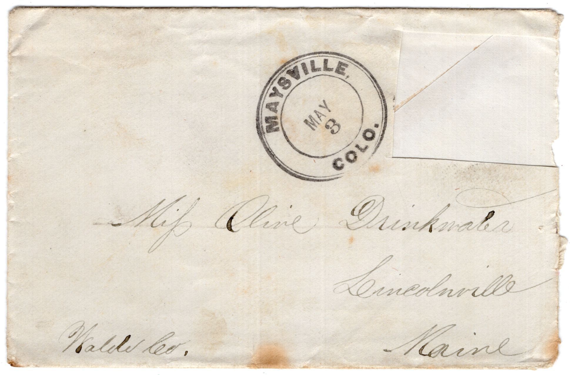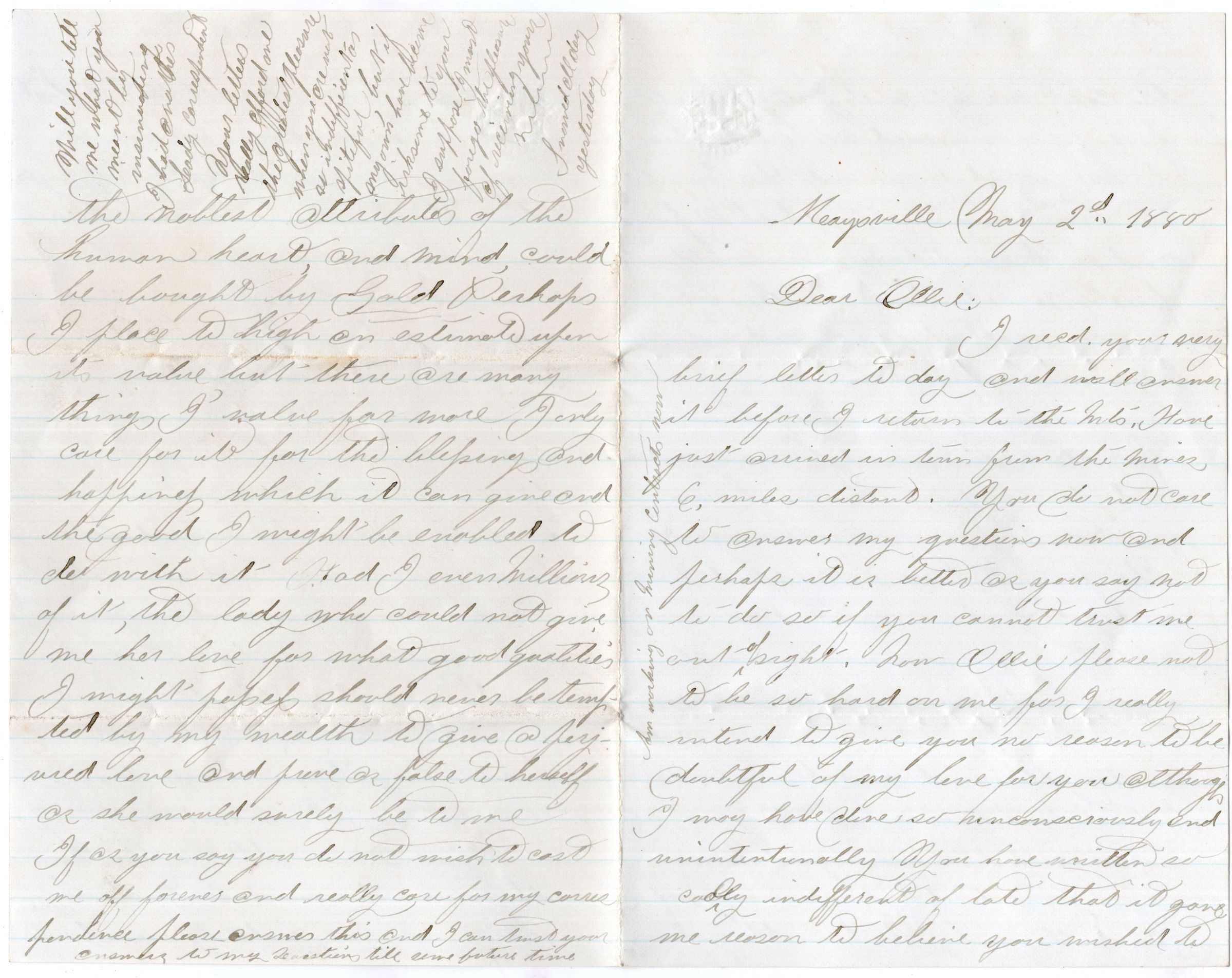 Knight Collection - 1880 Letter; Dated May 2nd; Written by Arno Knight to Olive Drinkwater; Arno is working in ColoradoRelationships