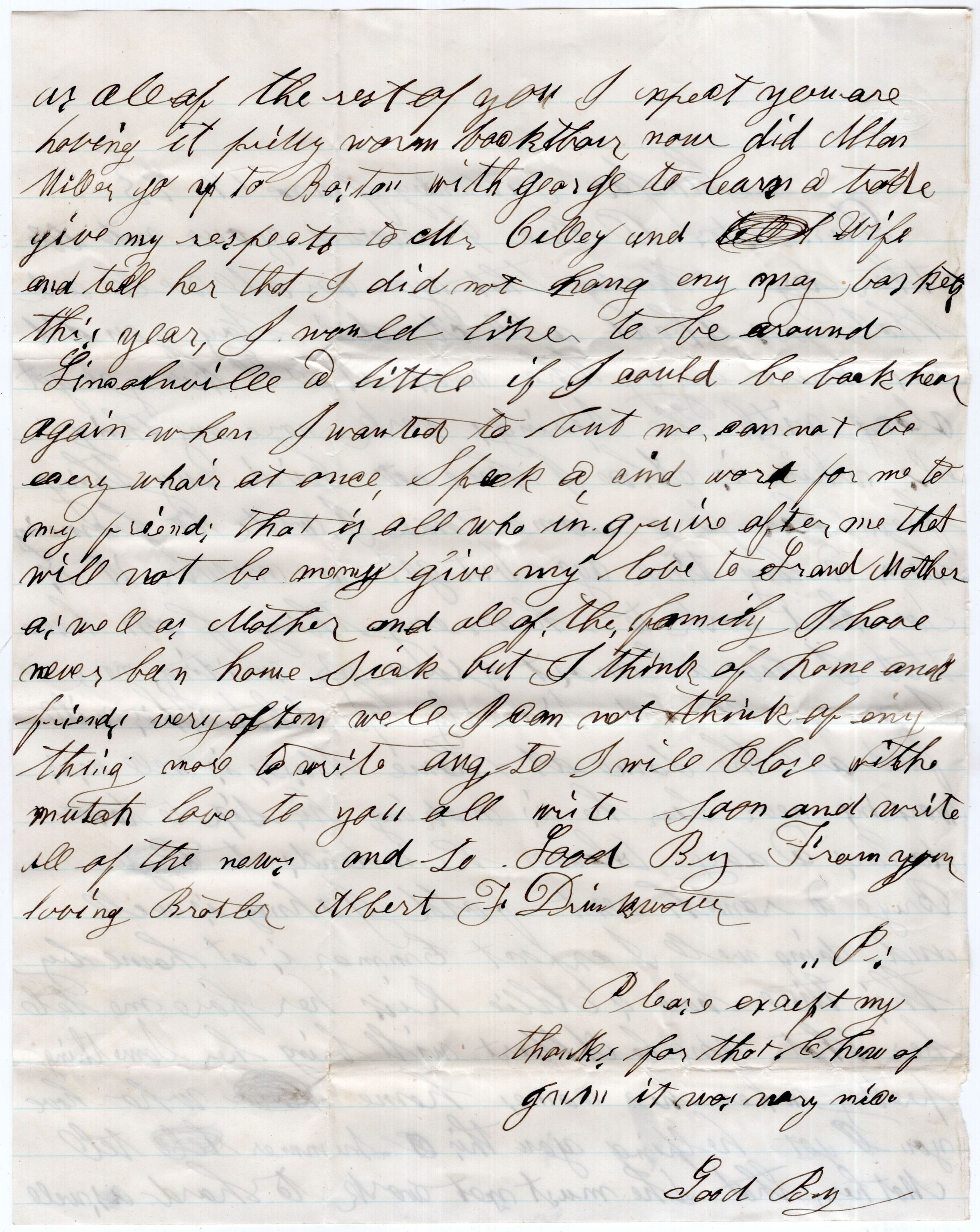 Knight Collection - 1873 Letter; Dated June 14th; Written by Albert Drinkwater (1854 - 1873) to his sister Olive Drinkwater (Knight); Albert is living in California