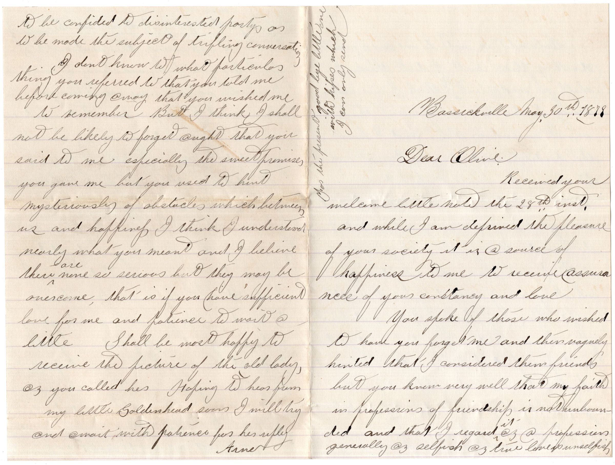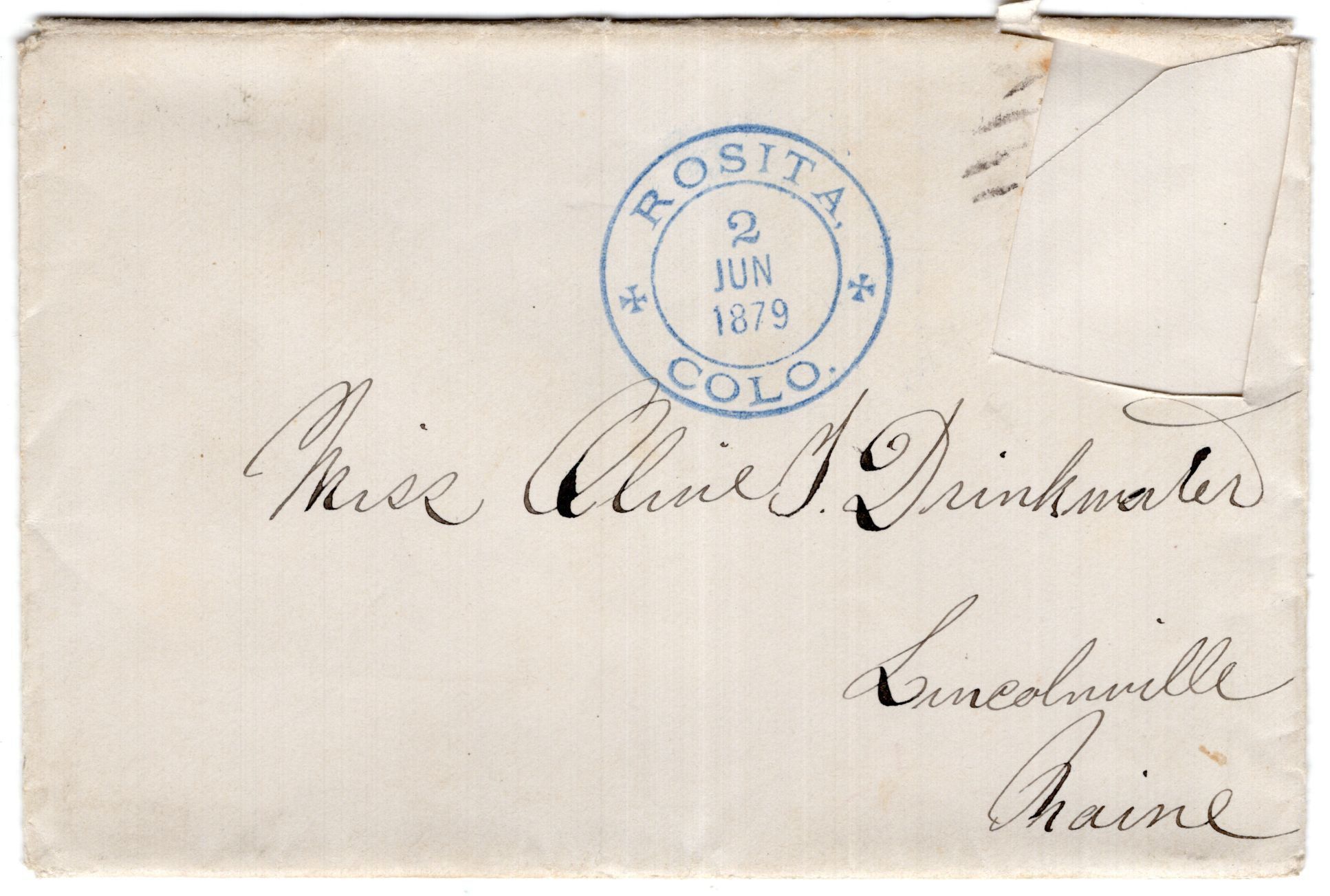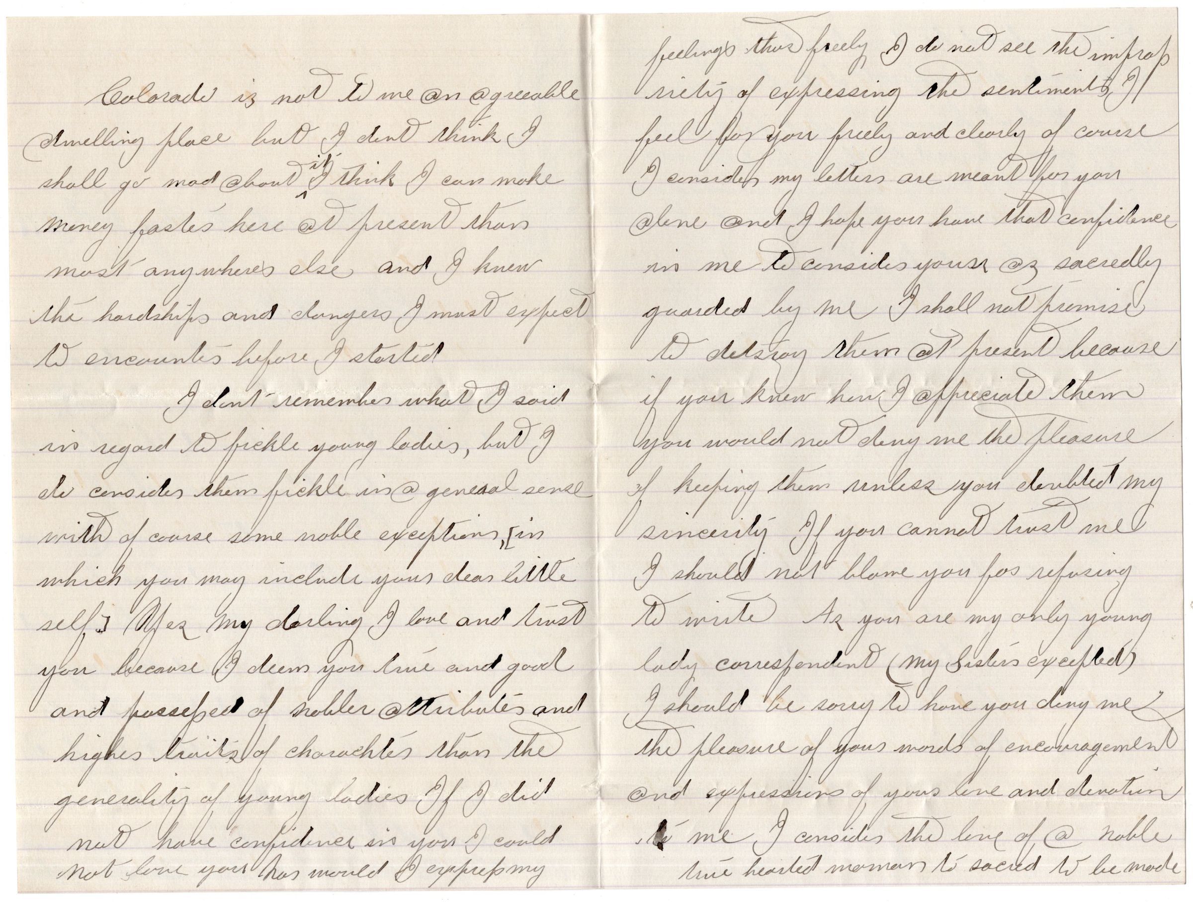 Knight Collection 1879 Letter; Dated May 30th; Written by Arno Knight to Olive Drinkwater; Arno is working out in ColoradoRelationships