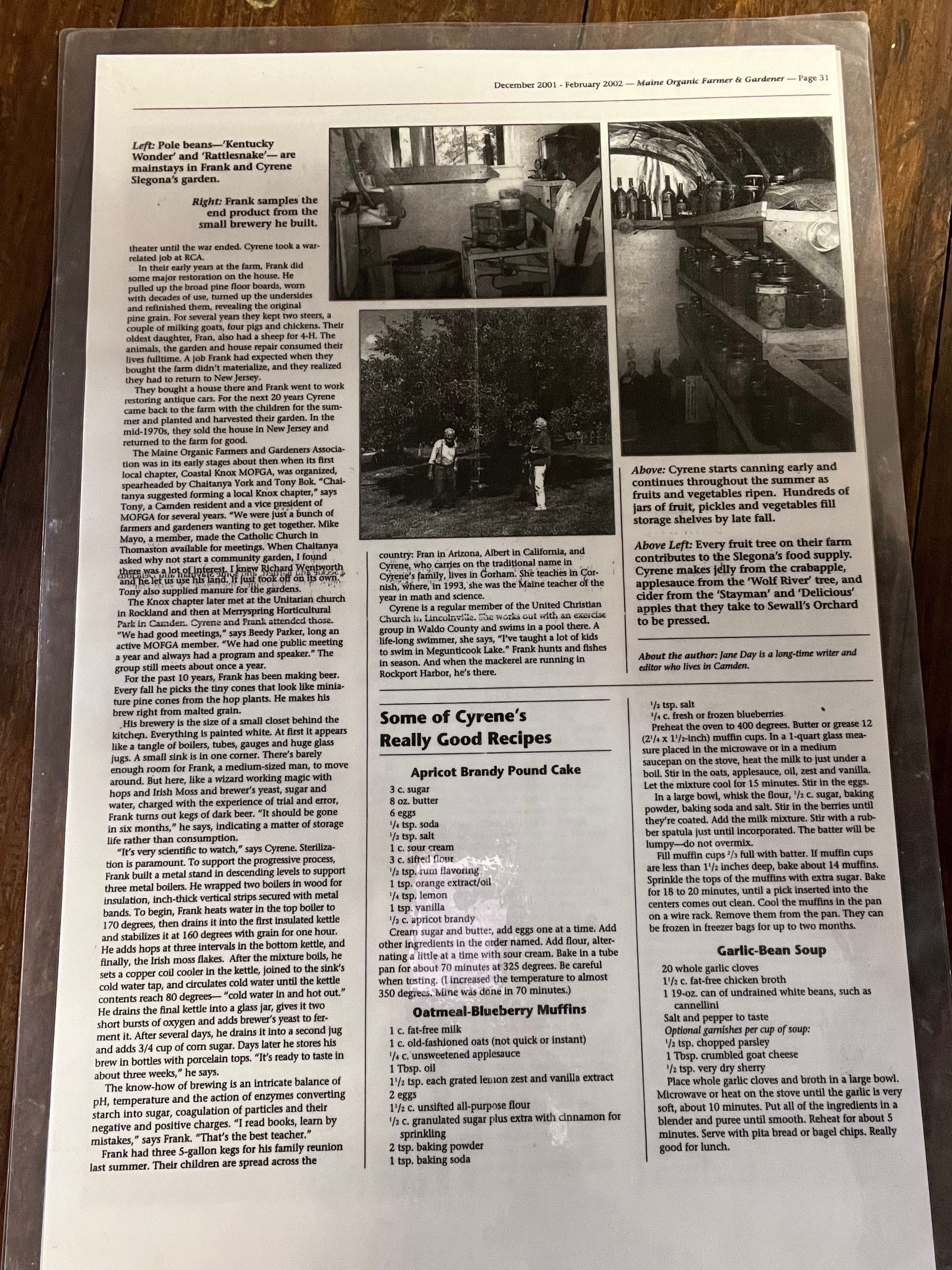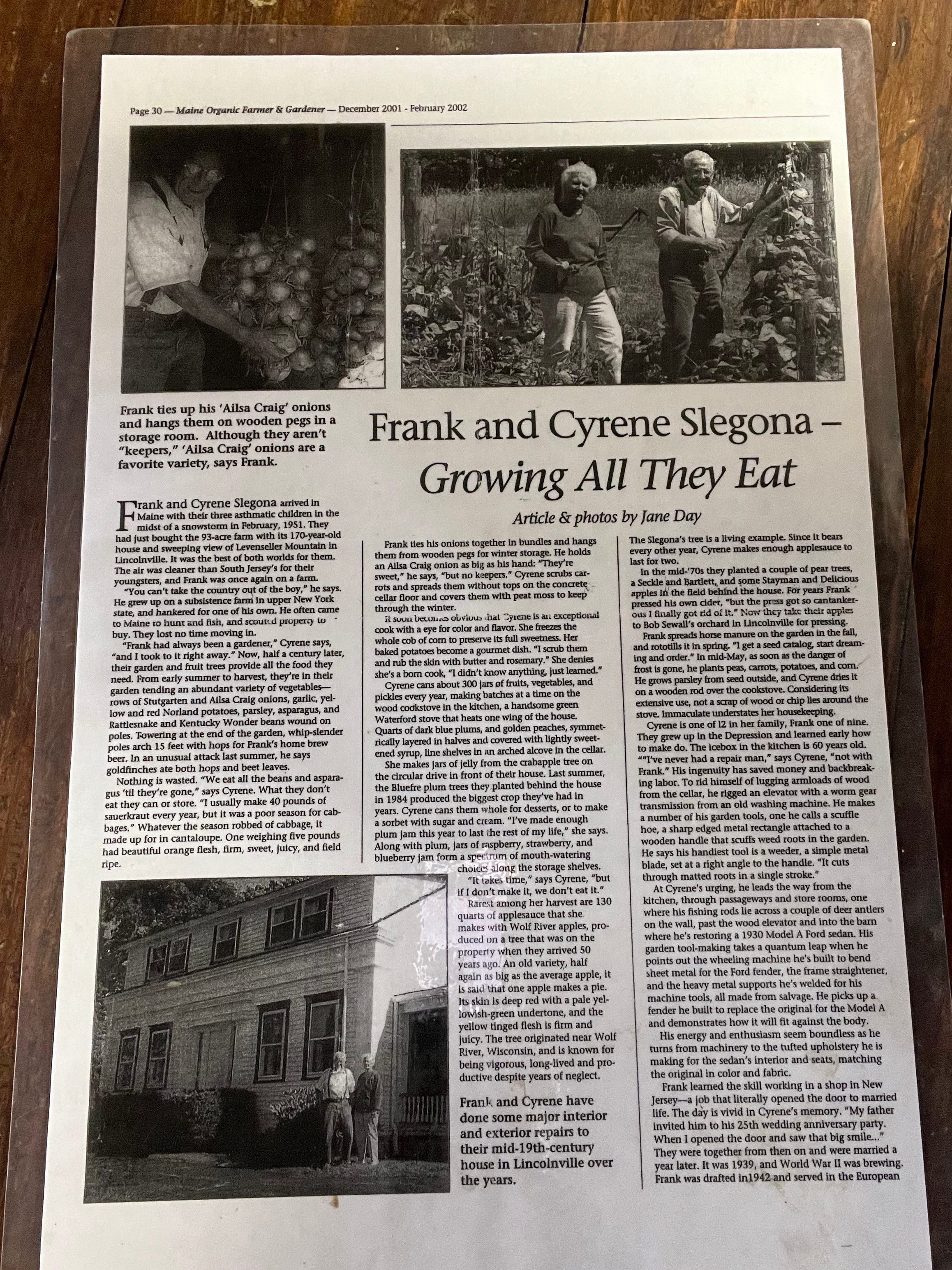 Newspaper article by Jane Day published in Maine Organic Farmer & Gardener, Dec. 2001