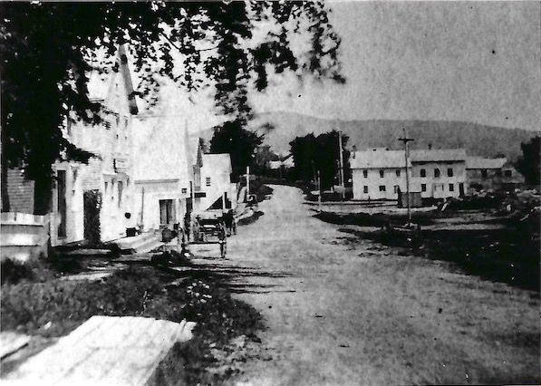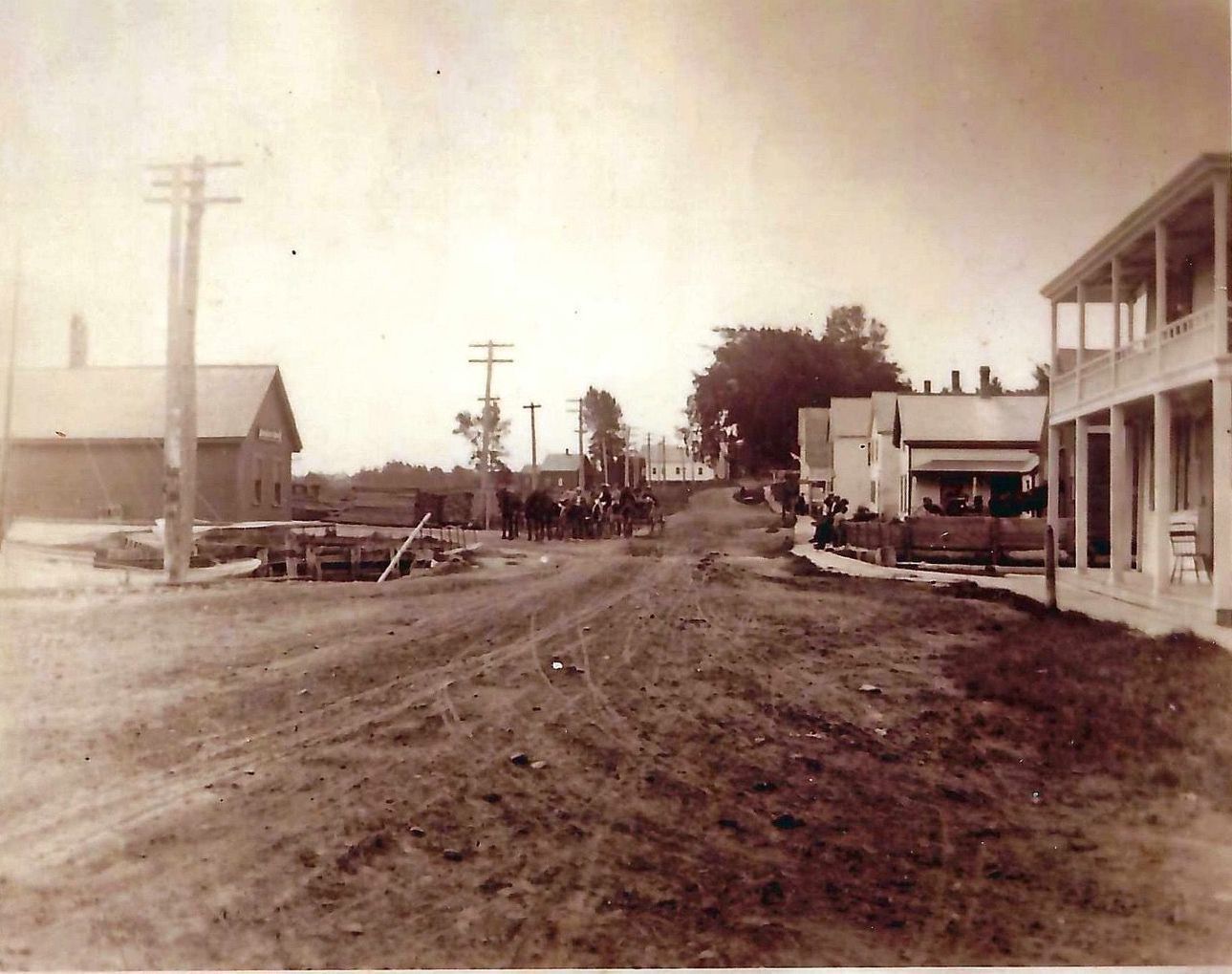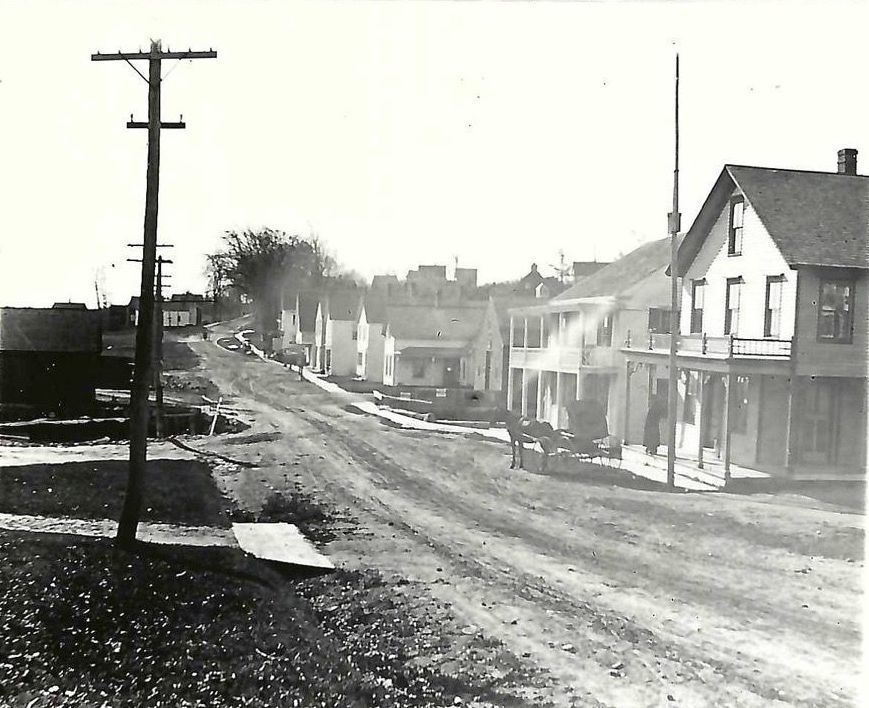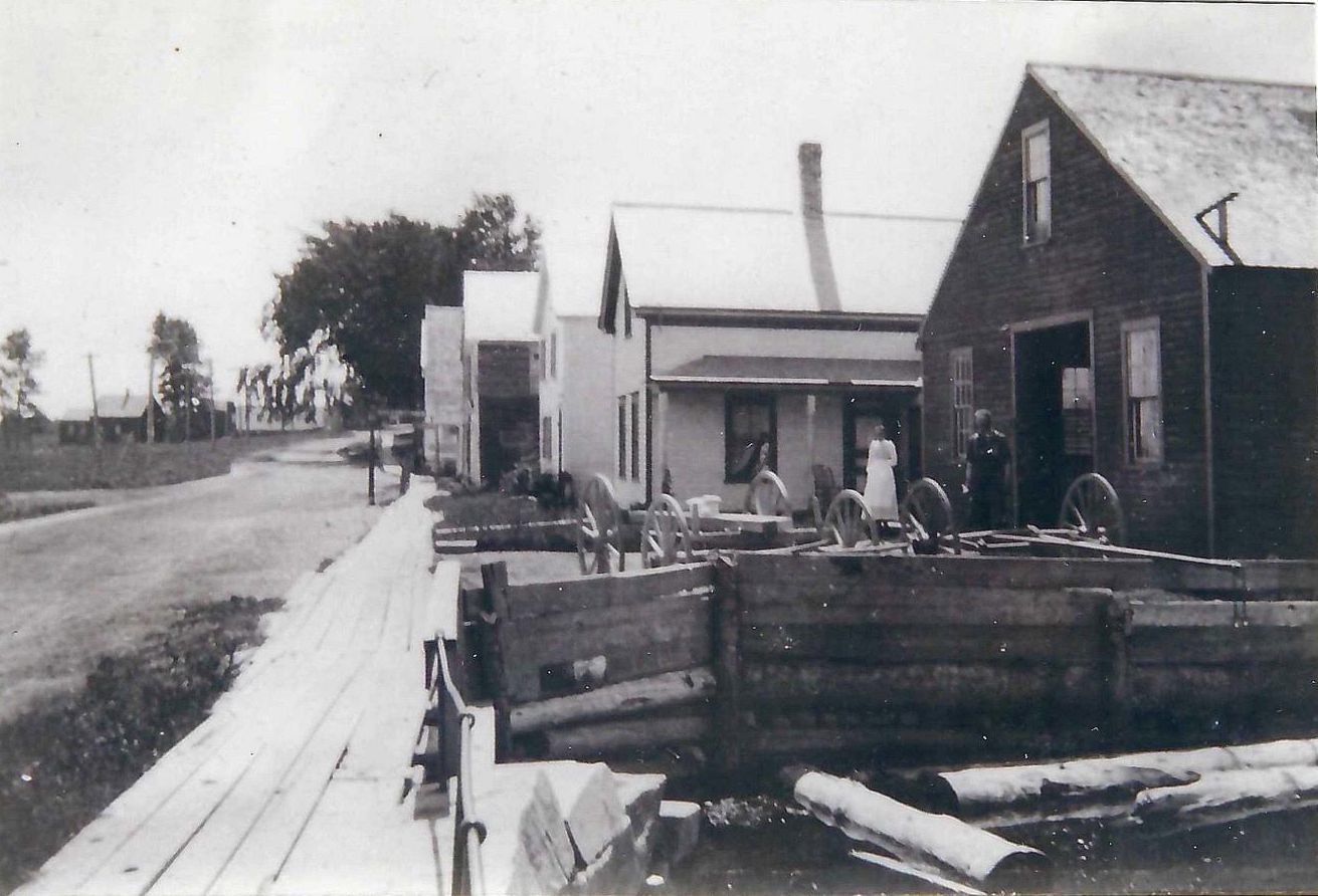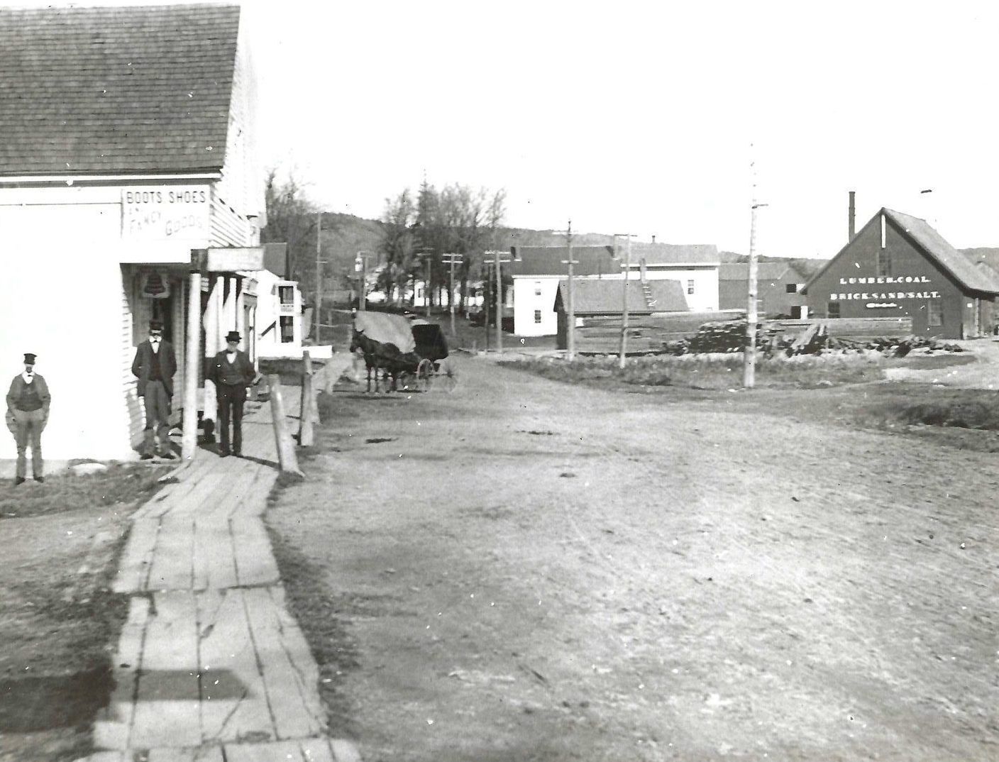 Left, R.W. Perry Shoe Store which sold boots, shoes, fancy goodfs. Right, D. Howe & Son Lumber & Coal Dealer sold sand and bricks as well