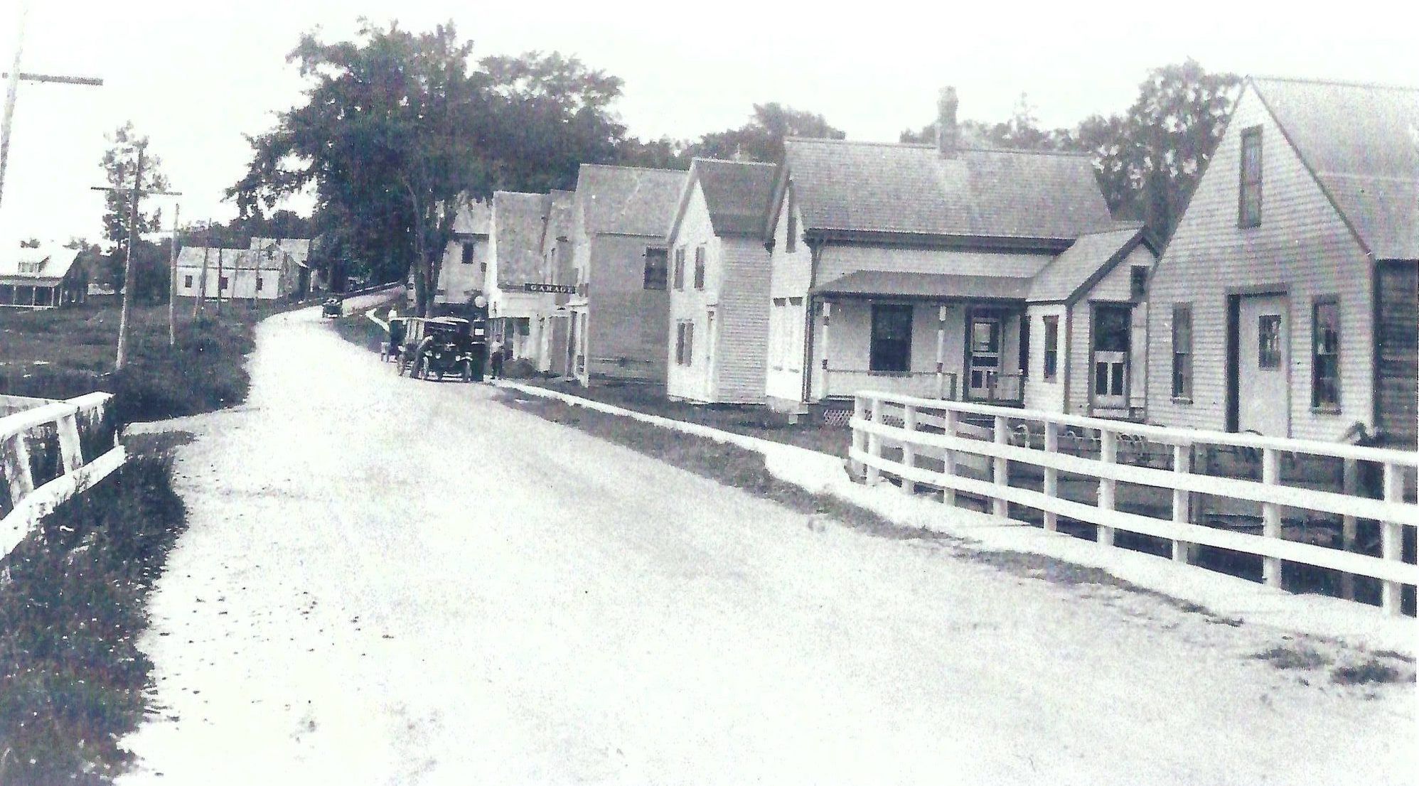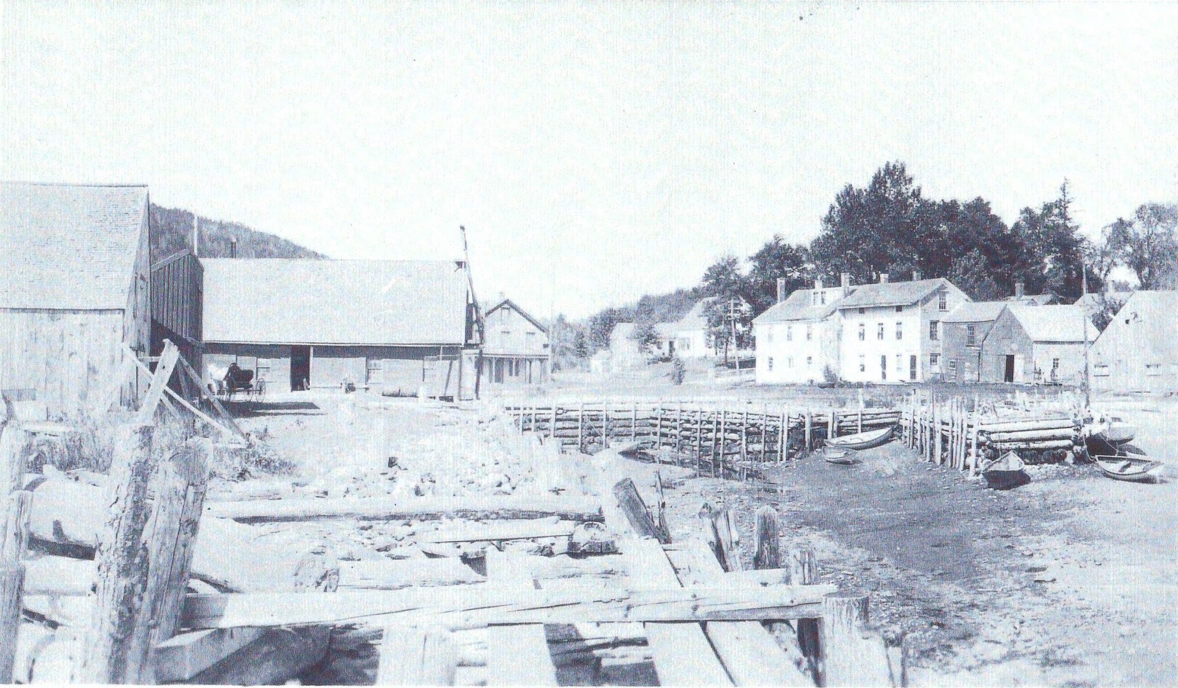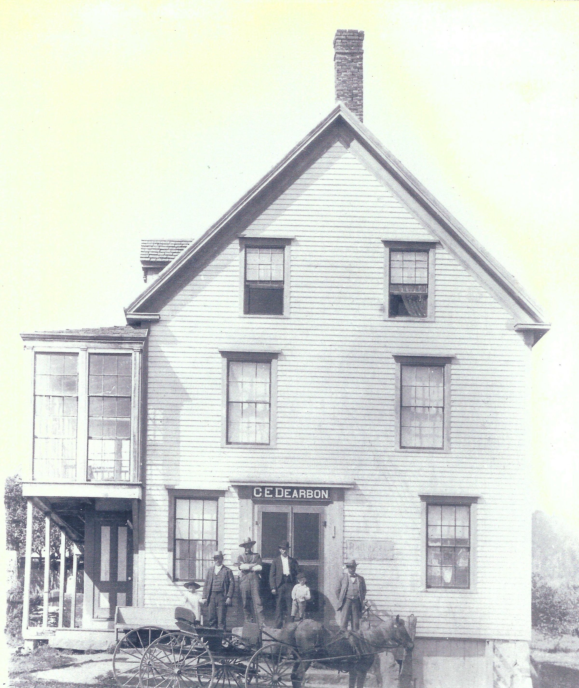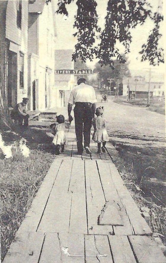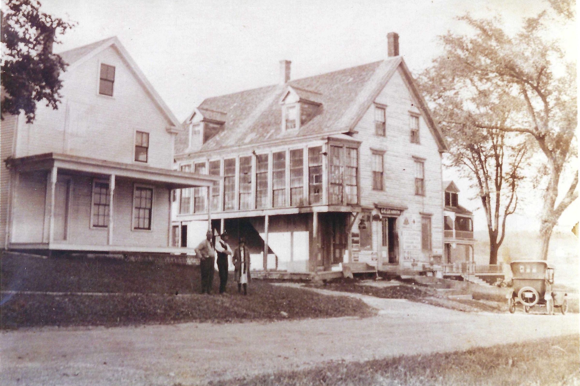 Left, R.W. Perry Shoe Store which sold boots, shoes, fancy goodfs. Right, D. Howe & Son Lumber & Coal Dealer sold sand and bricks as well