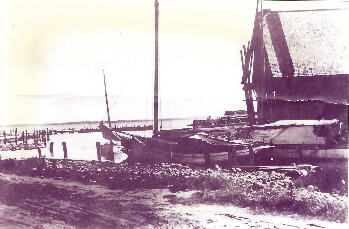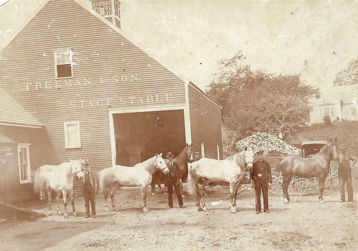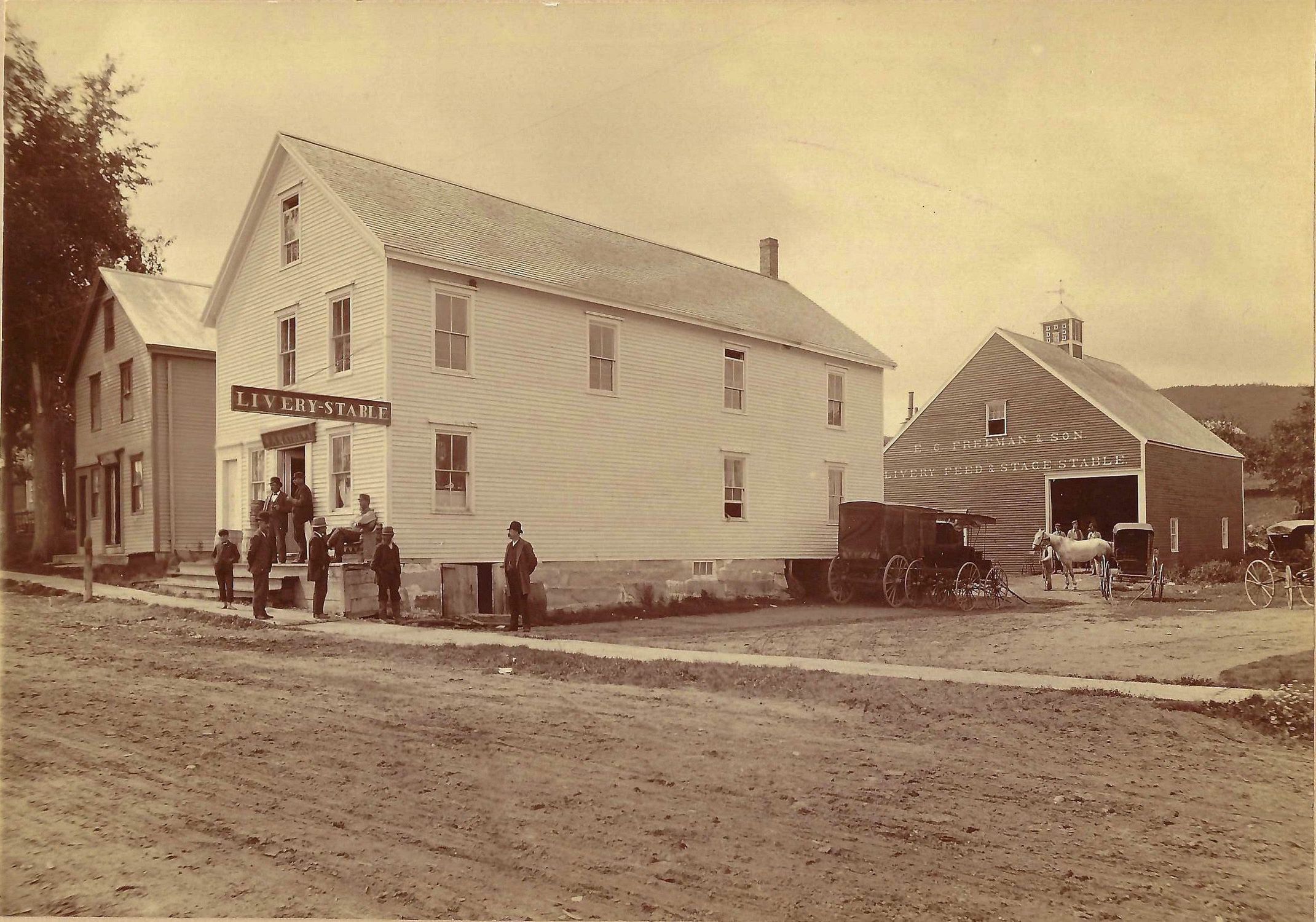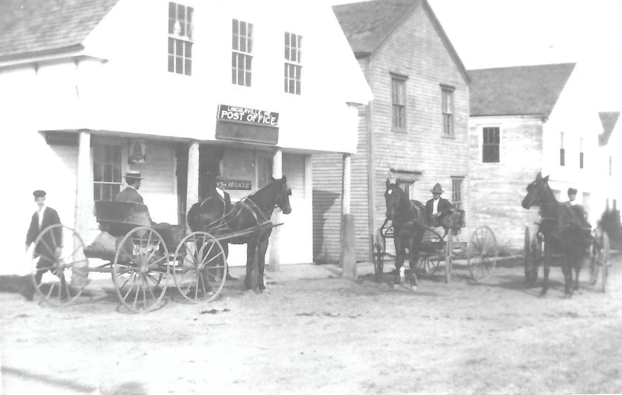 Left, R.W. Perry Shoe Store which sold boots, shoes, fancy goodfs. Right, D. Howe & Son Lumber & Coal Dealer sold sand and bricks as well