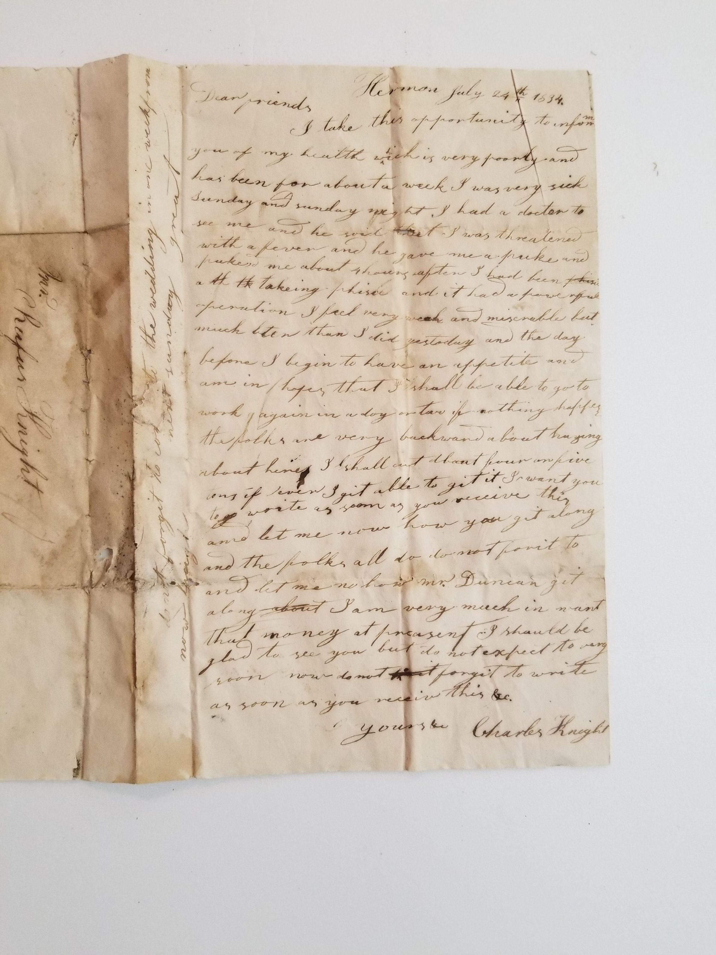 Knight Collection - 1834 Letter; Dated July 24th; Written by Charles Knight to his brother Rufus KnightRelationships