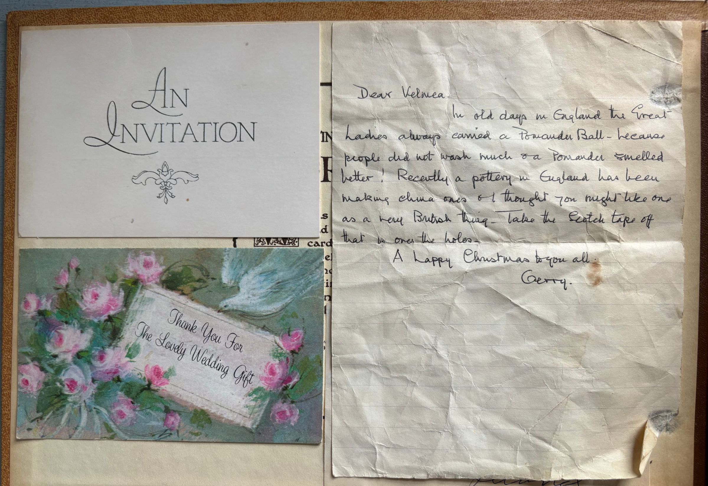 Scrapbook with personal letters and cards, and newspaper clippings; found at the Lincolnville Community Library; possibly owned by Velmae and Leland ShermanRelationships