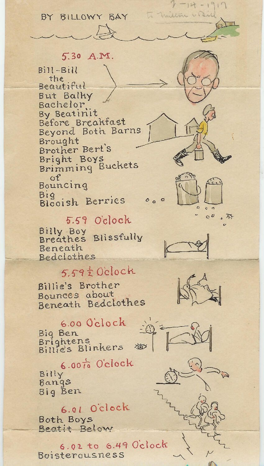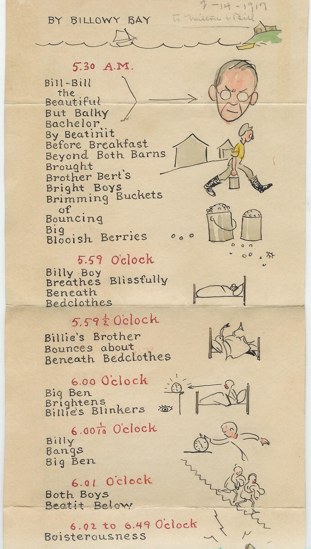 A humorous schedule by Bert Davis for his sons, Milton and Bill.Relationships