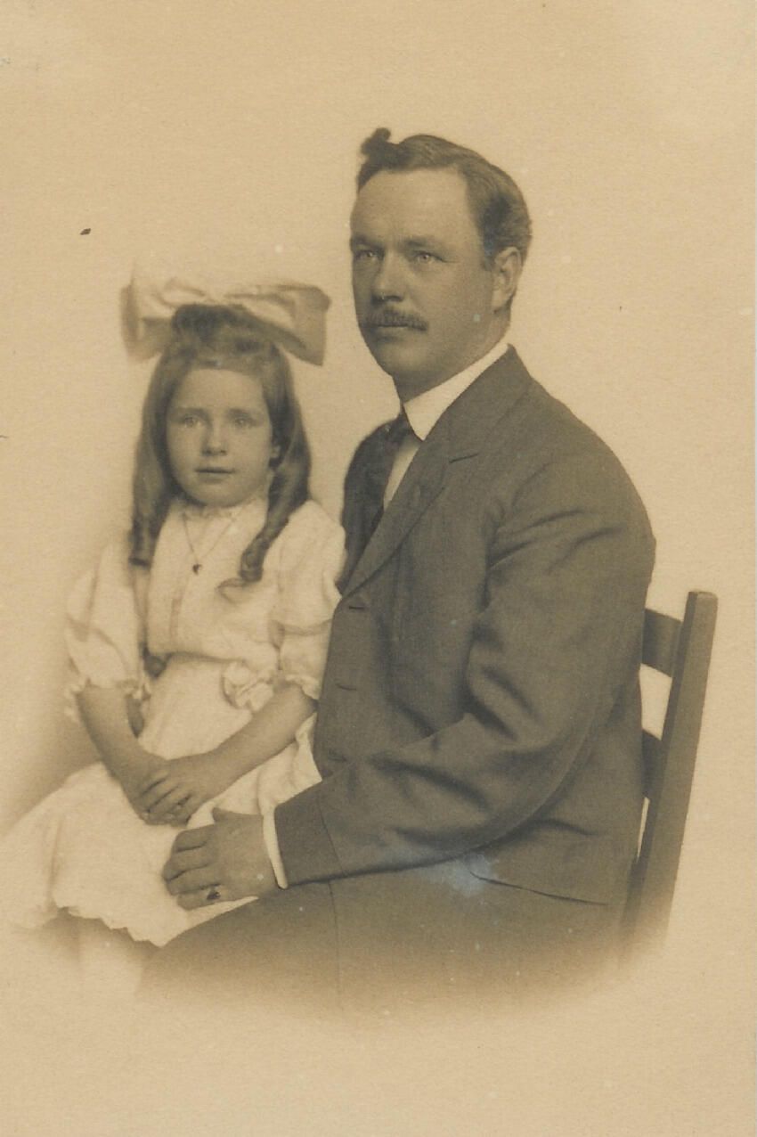 unidentified studio portrait of man with a little girl; possibly Pillsbury family membersRelationships