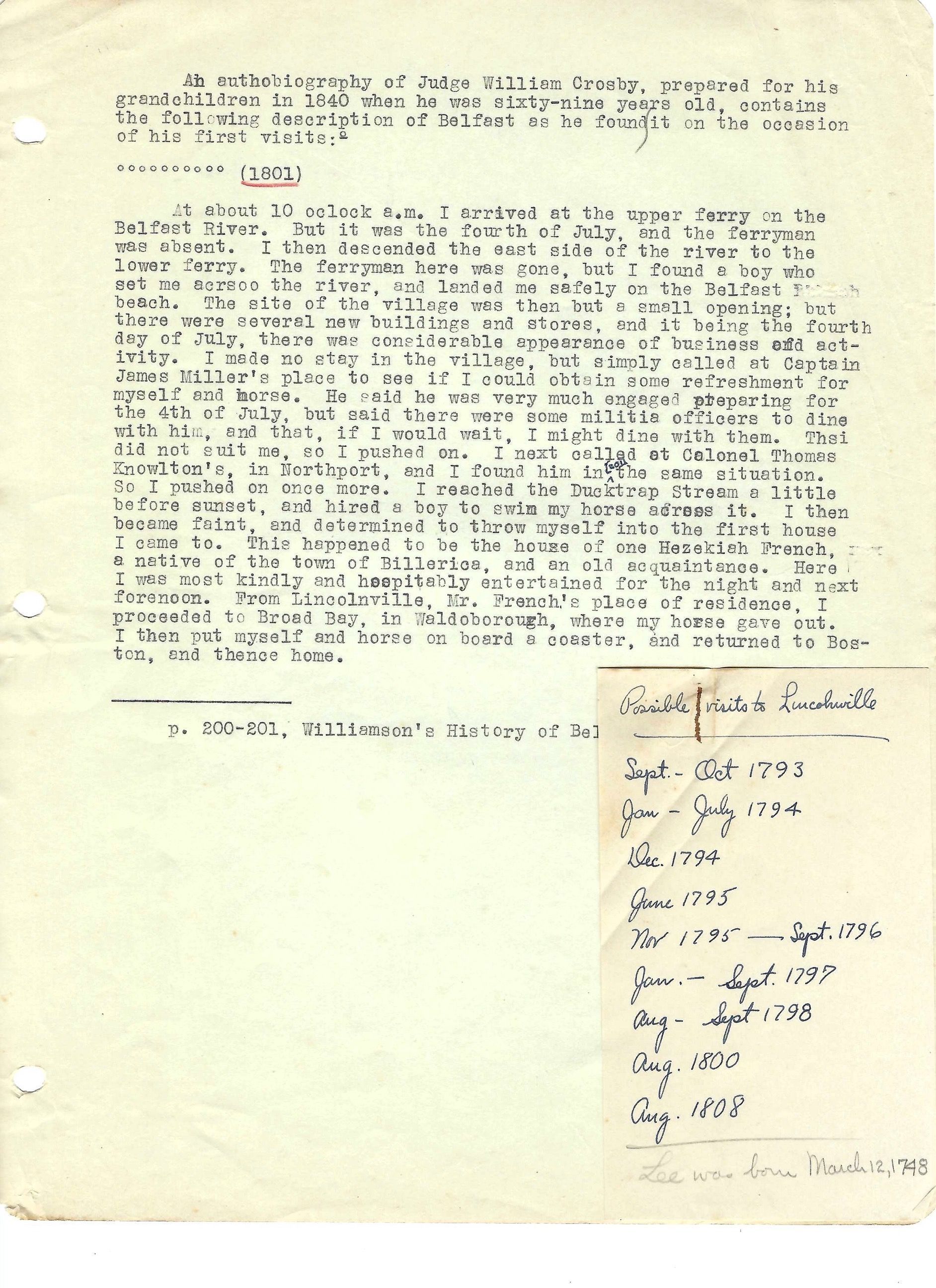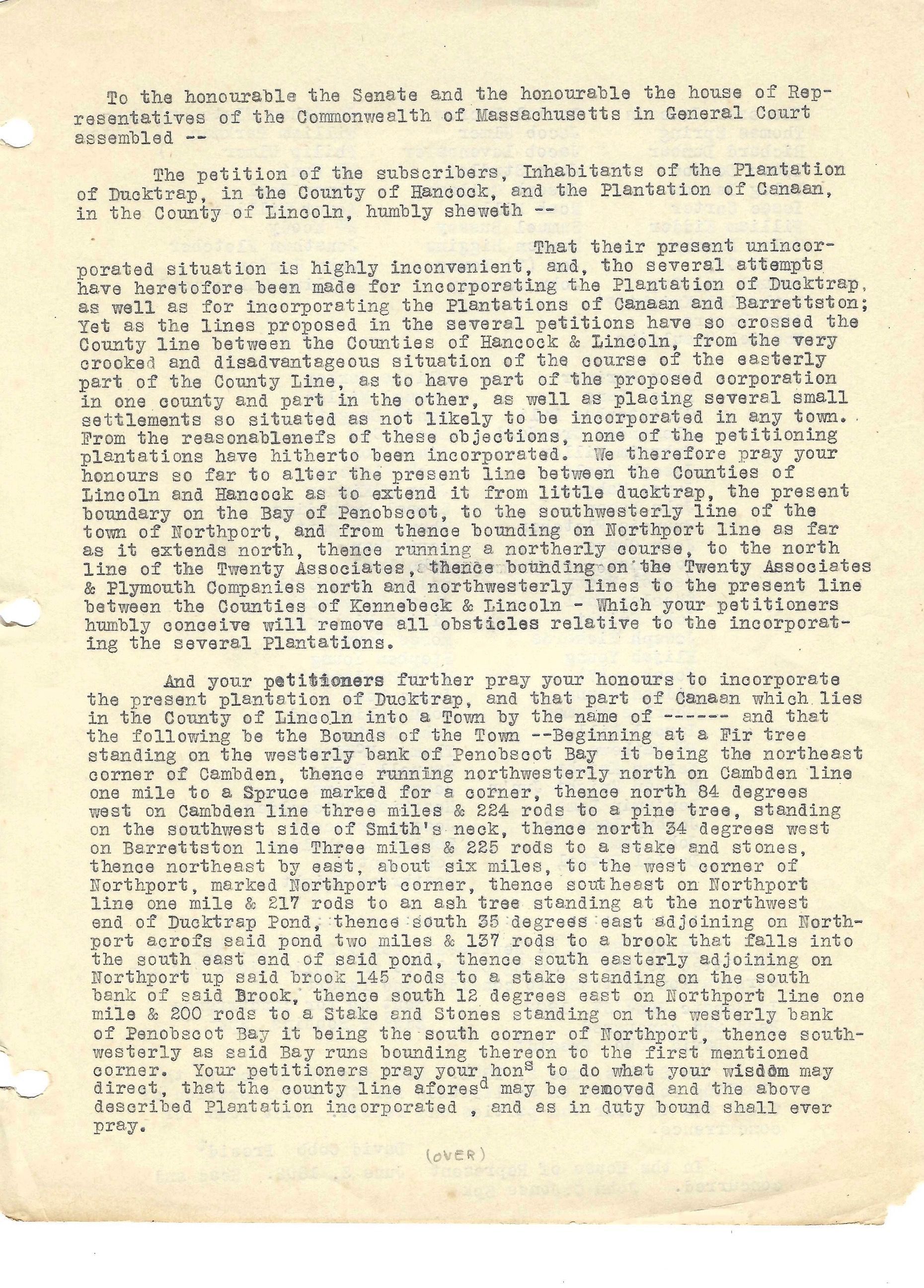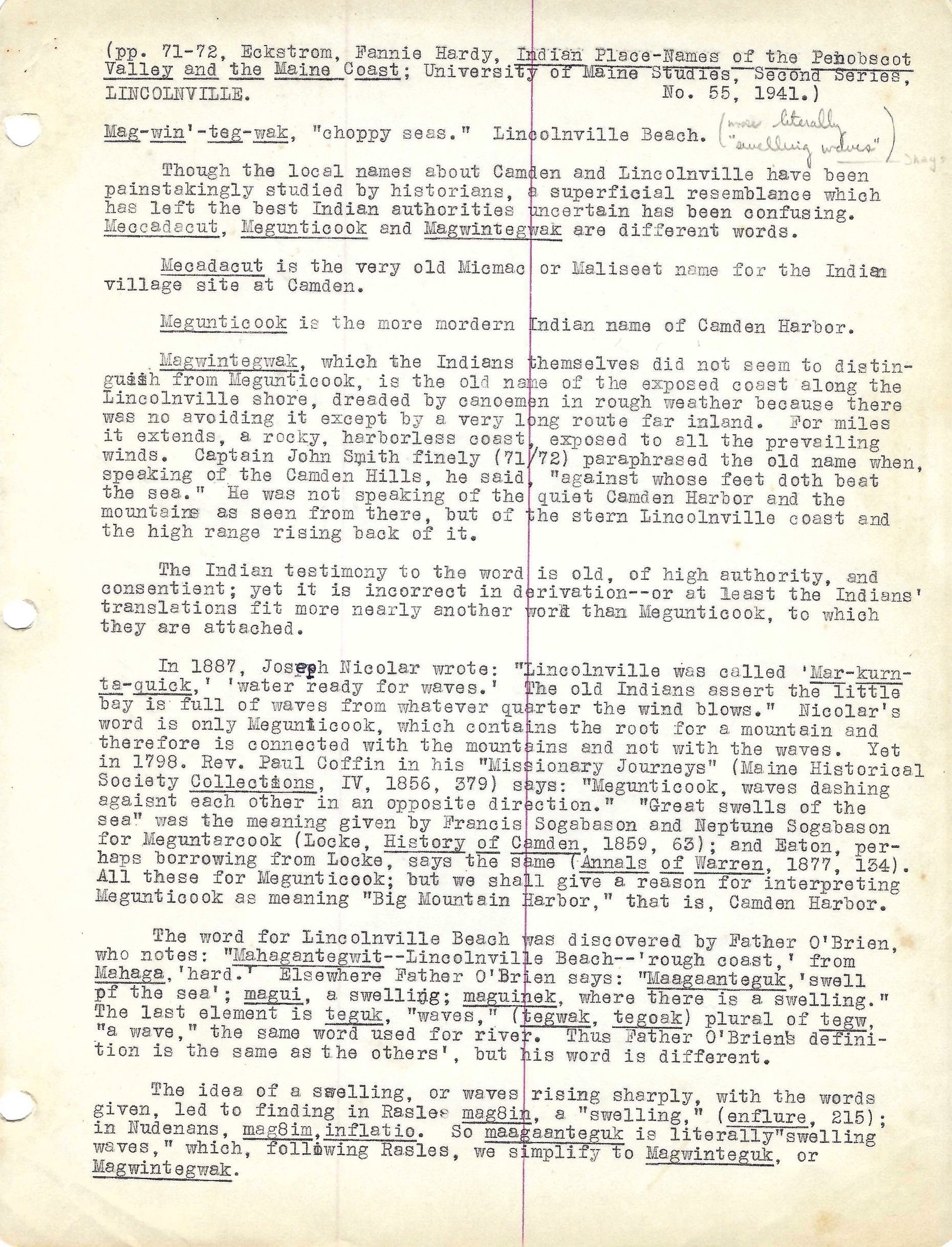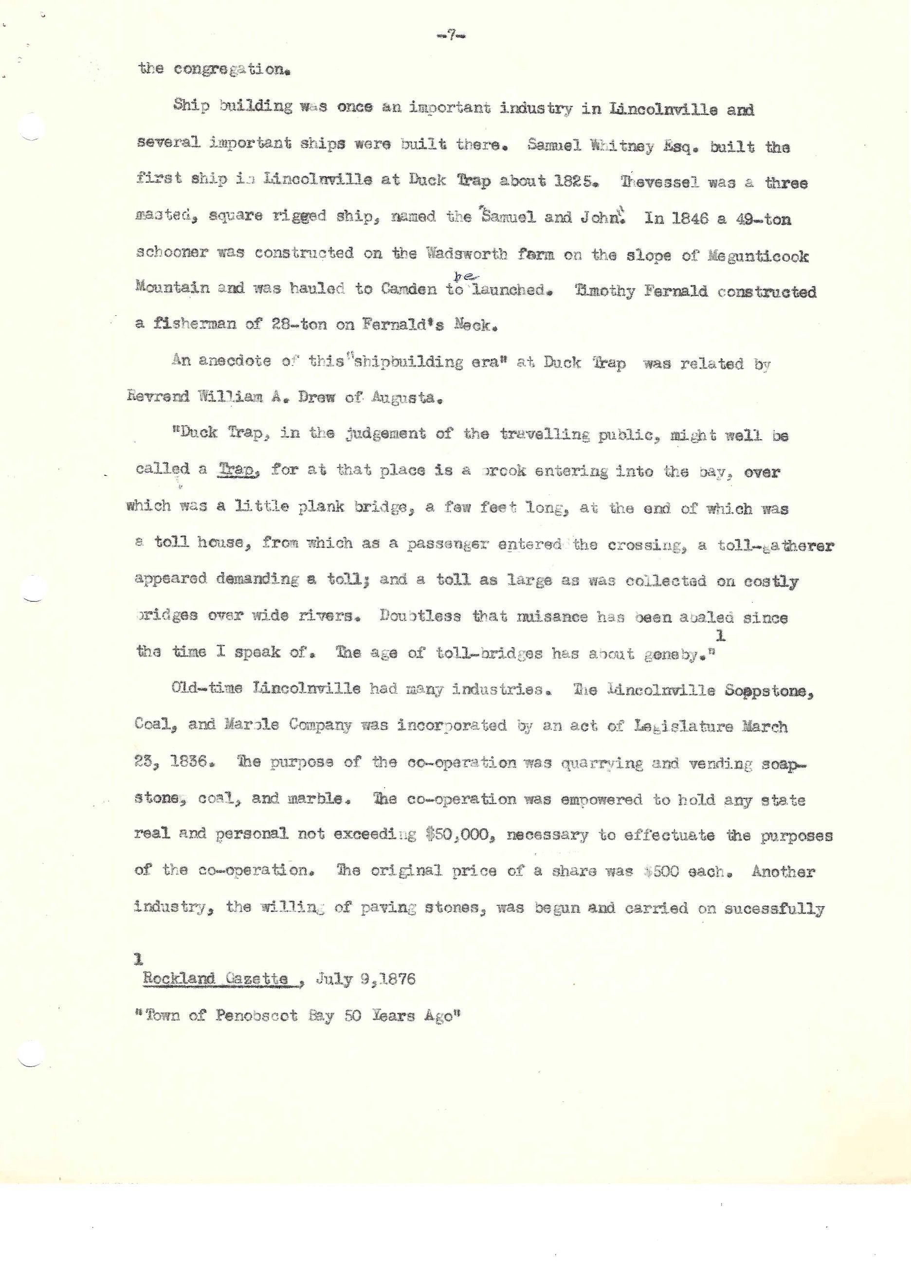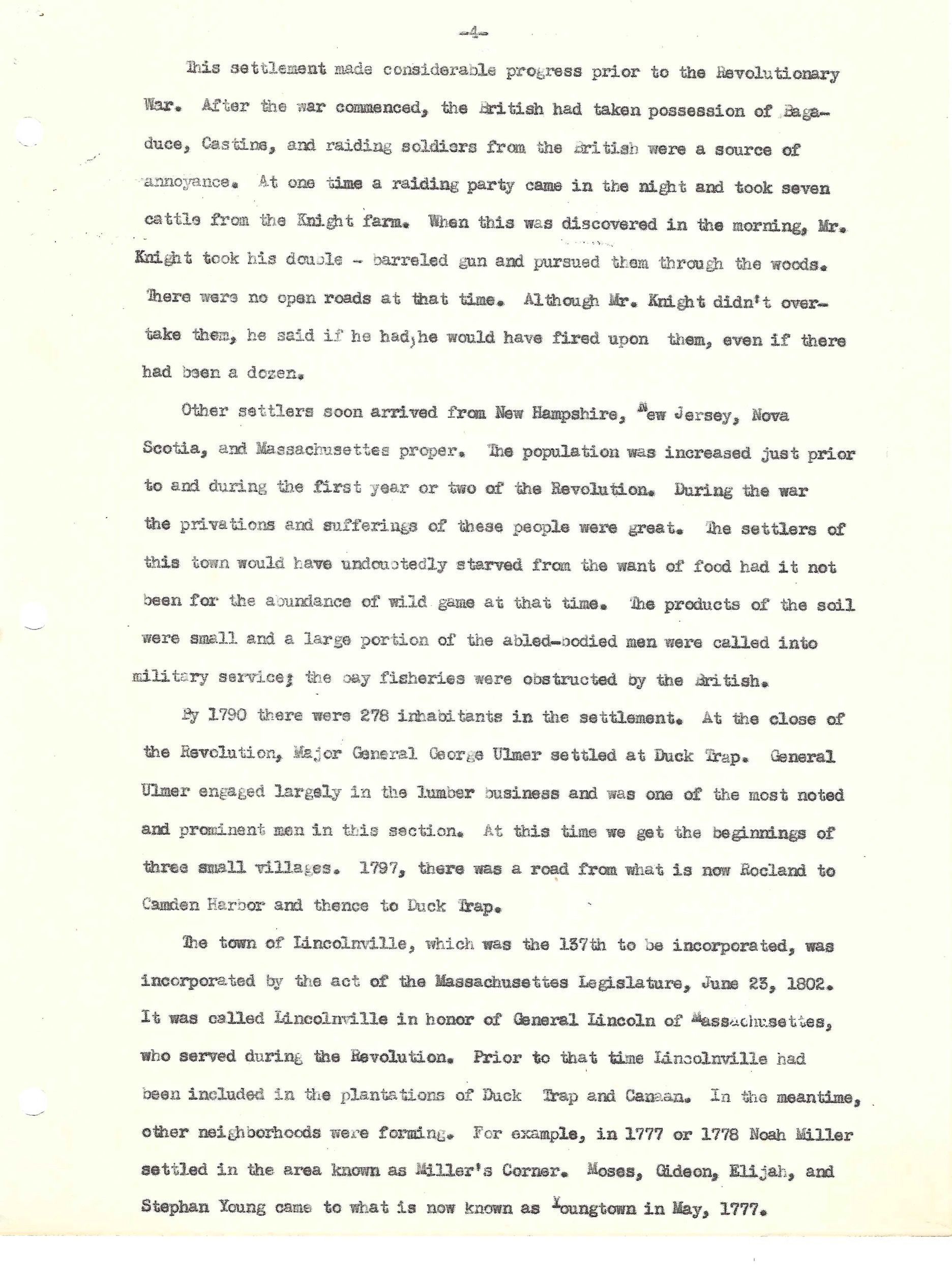 A history of Lincolnville complete with a table of contents, body, bibliography and other incidental information