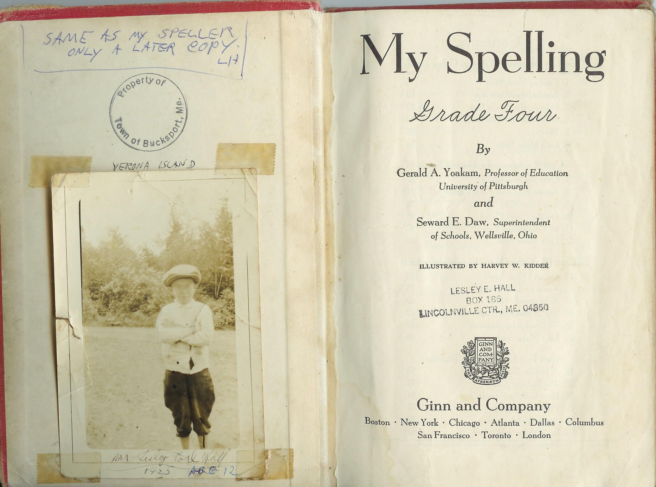 inside back cover: "In my grade [at Verona Island] Maynard Hall, Marion Schildrothe